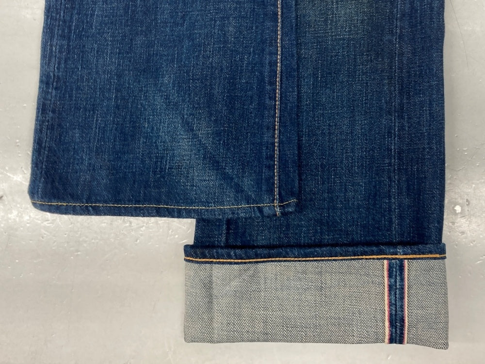 | 実寸サイズ | ウエスト 約80cm / 股上 約23cm / 股下 約79.5cm / 裾幅 約20.5cm |