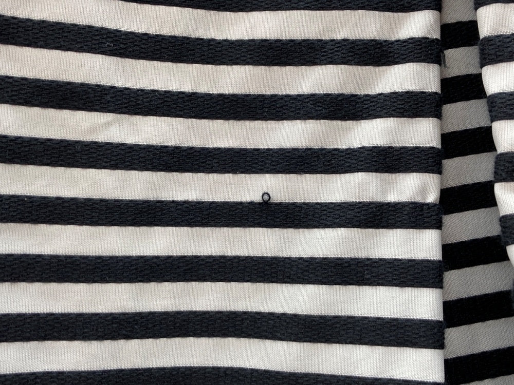 | 状態詳細 | 背面中央あたりにほつれ、シミあり |