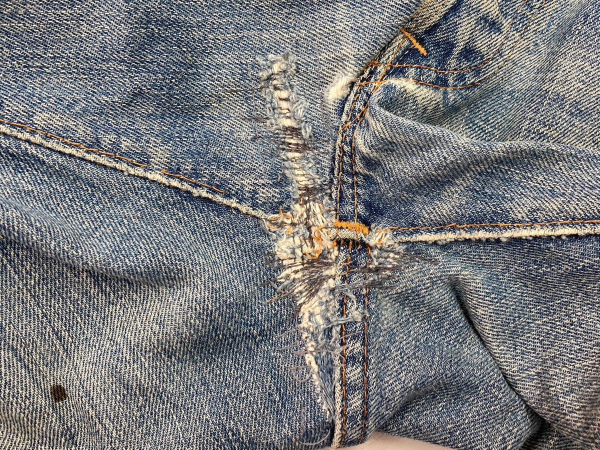 | 状態詳細 | 全体に汚れ、ダメージあり フロント、股、スレーキ部分リペアあり ポケット部分破れ、穴あり |