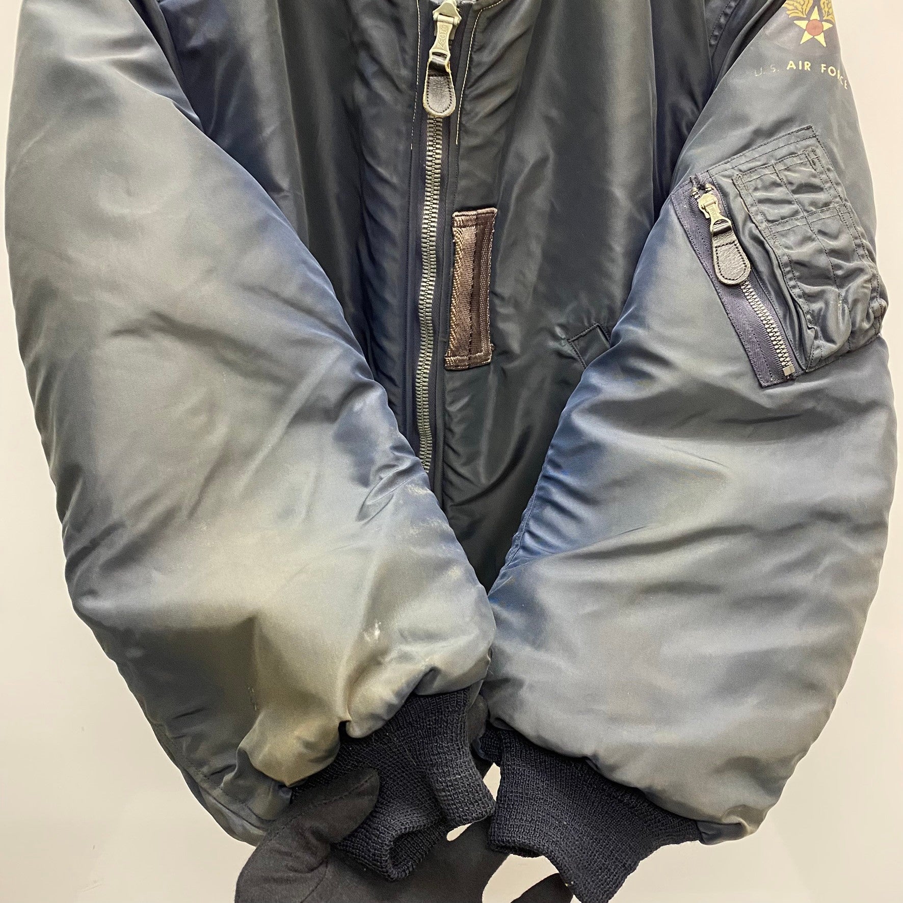 | 状態詳細 | フロント面、肩、袖にフェードがございます。襟、裾リブに細かい穴、傷あり。袖リブに穴はございません。 その他全体的に使用感、細かい傷や汚れがございます。詳細は画像をご確認ください。 |