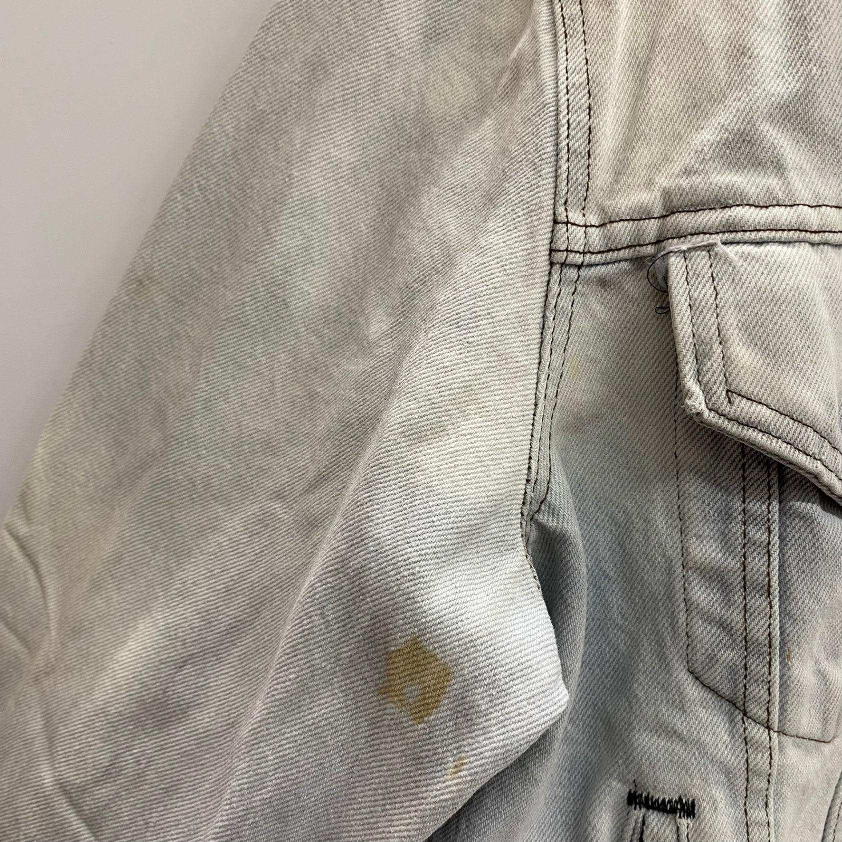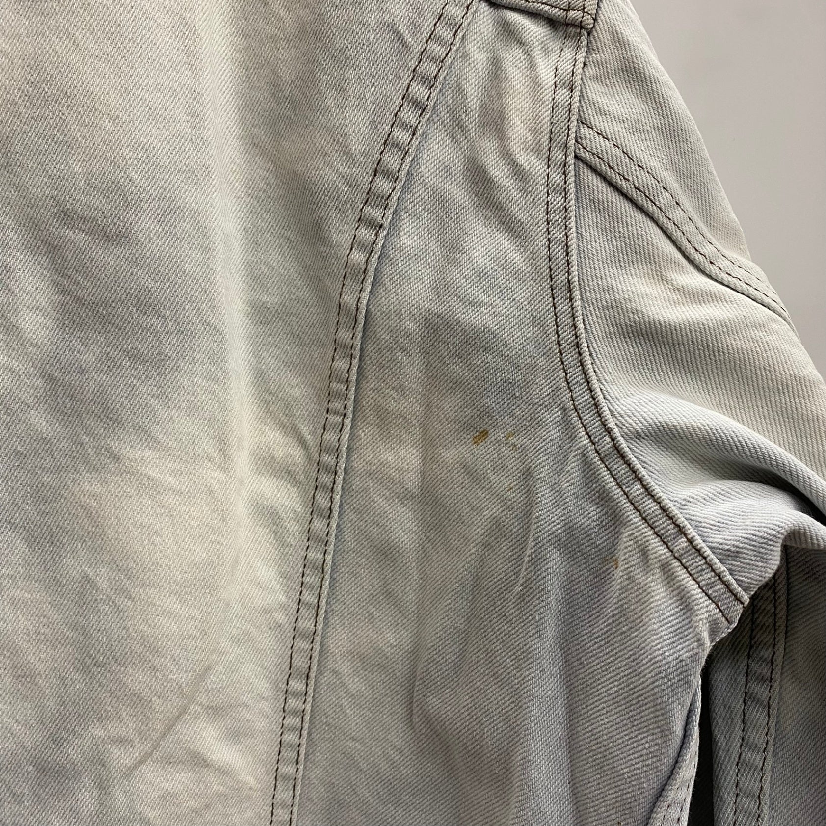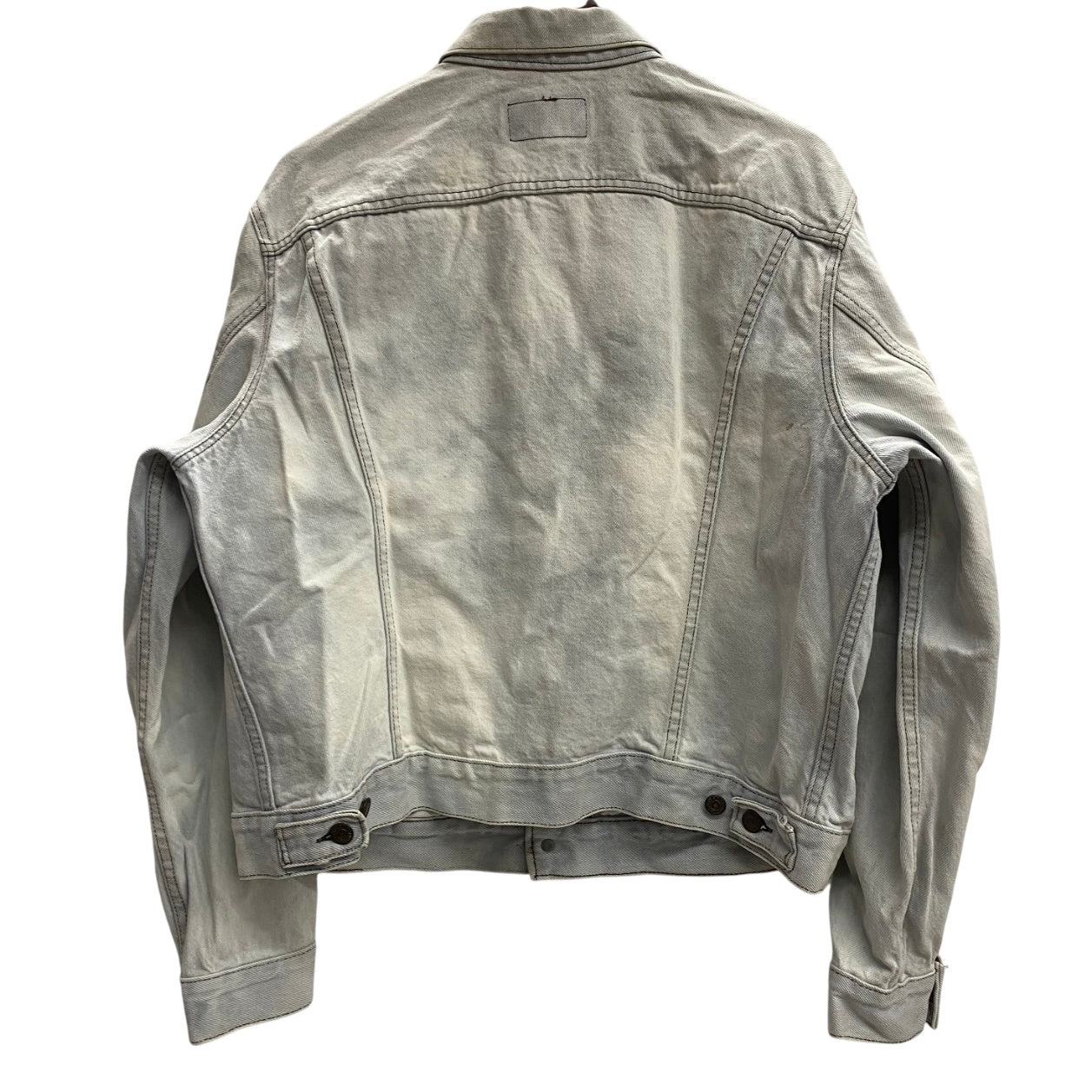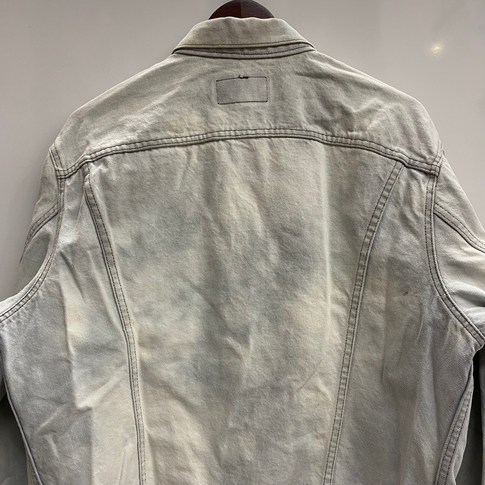 | 状態詳細 | ブリーチされています。青みがかったホワイトのような色合い。右脇周辺にシミ汚れあり。 その他全体的に使用感、細かい傷や汚れがございます。詳細は画像をご確認ください。 |