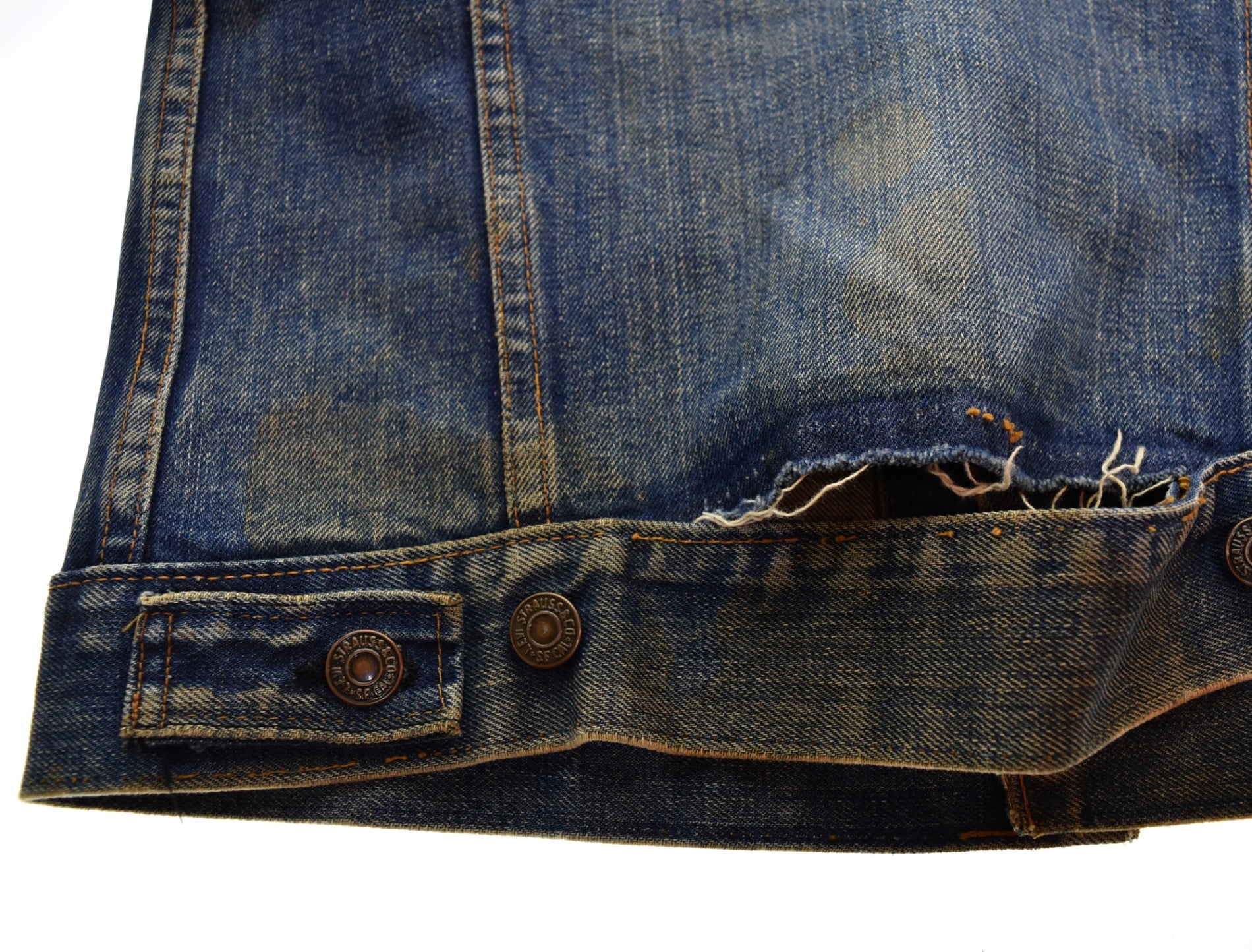 | 状態詳細 | 背中側裾ステッチほつれダメージ、襟袖ダメージ、各所ダメージ汚れあり 赤タブ欠品 |
