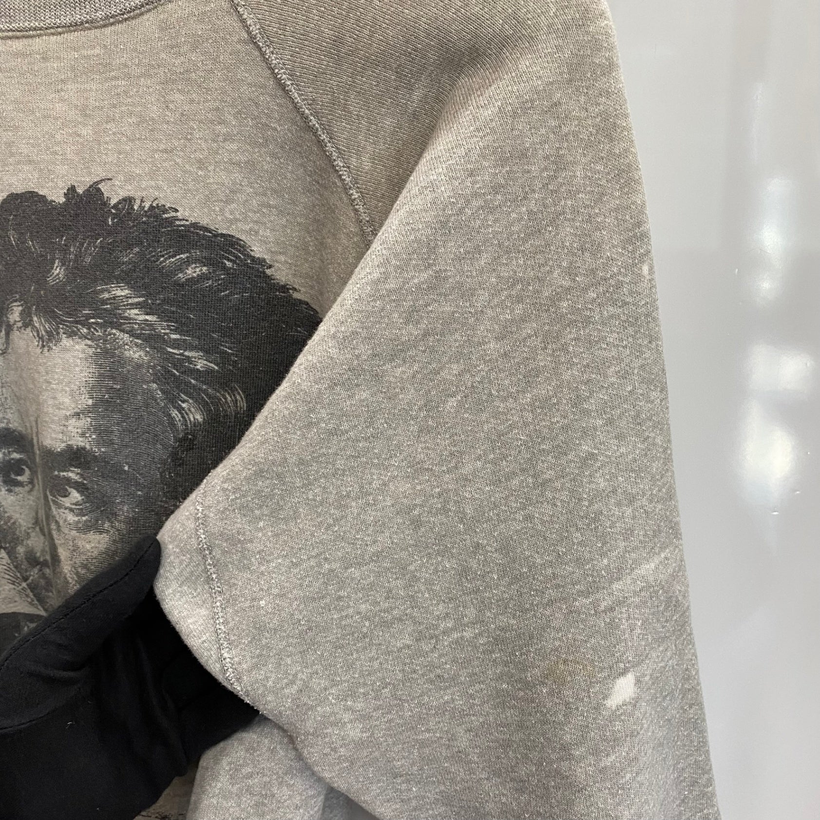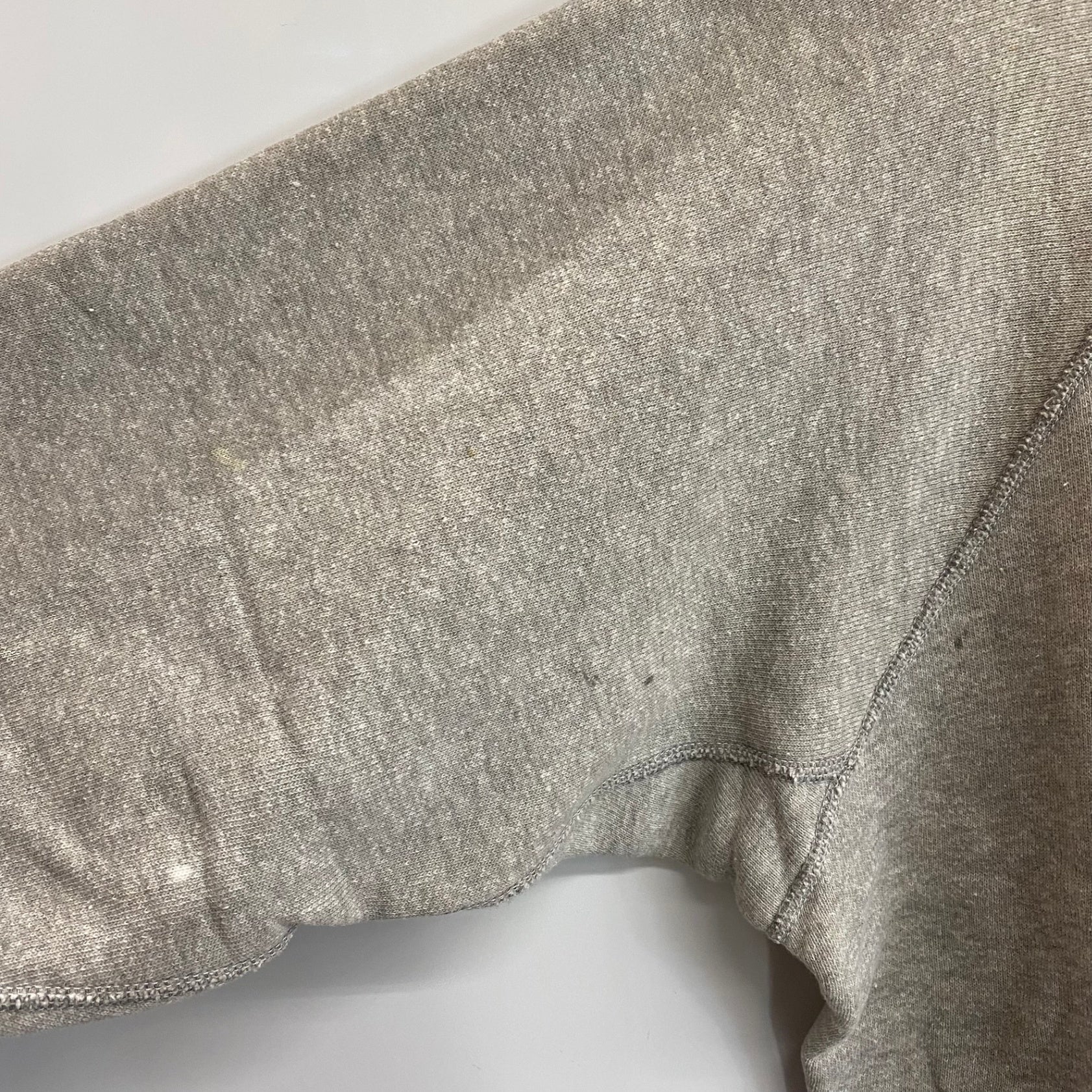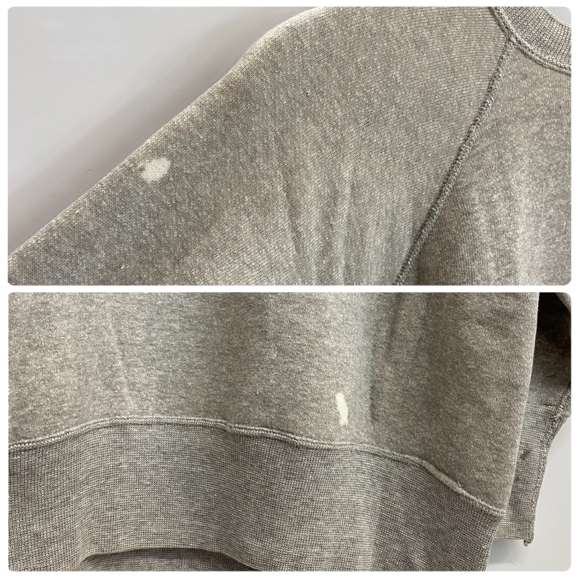 状態詳細 フロント面襟リブ横に小さな穴あり。後ろ面右裾上に脱色のような汚れあり。両アームに汚れ、脱色汚れあり。 その他全体的に使用感、細かい傷や汚れがございます。詳細は画像をご確認ください。