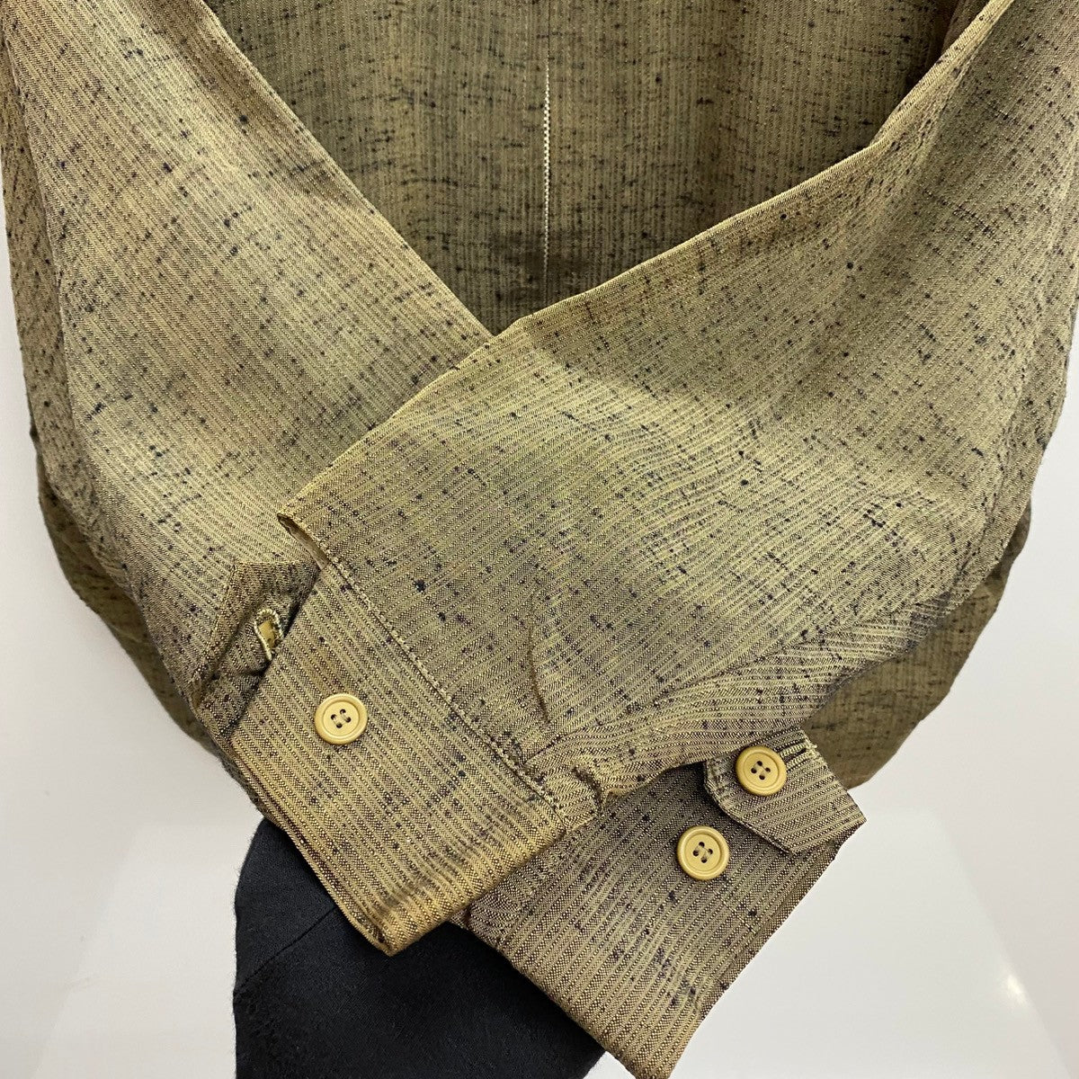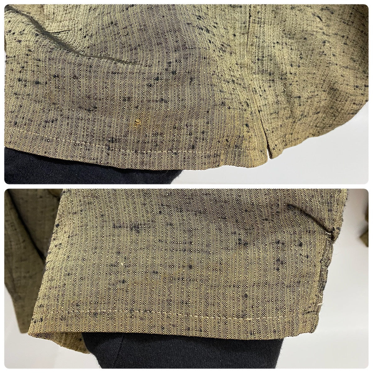 | 状態詳細 | 肩周辺に日焼け、シミ汚れ有。フロント面裾周辺に小さな傷、シミ汚れ有。肩パット有。 その他全体的に使用感、細かい傷や汚れが見られます。詳細は画像をご確認ください。 |