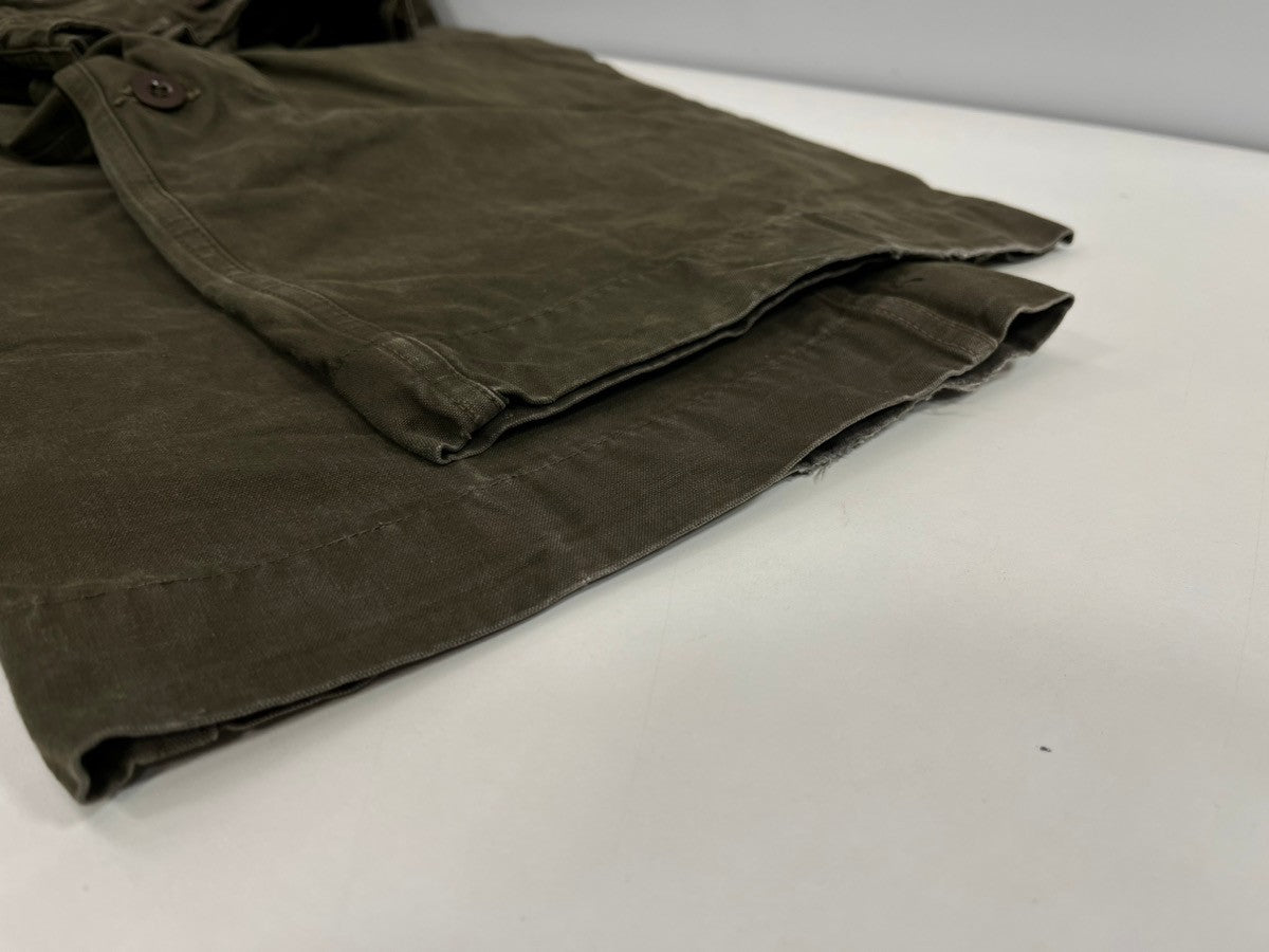| 注意事項 | ※こちらの商品は、写真にて実際の色味が出にくくなっております。ご不安がある際は型番などでお調べいたただくか、事前にお問い合わせをお願いいたします。※画像のように全体的に着用感やヤケが見られます。ユーズド慣れされた方や雰囲気重視された方でしたら、問題なく着用していただける状態です。生地のダメージや匂いなど、ミリタリーアイテム特有のダメージがございます。リペアや部品の欠損などすべてを把握し記載することが難しくなっております。また、通常の衣類と比べ縫製は甘くなっておりますのであらかじめご了承の上お買い求めください。 |