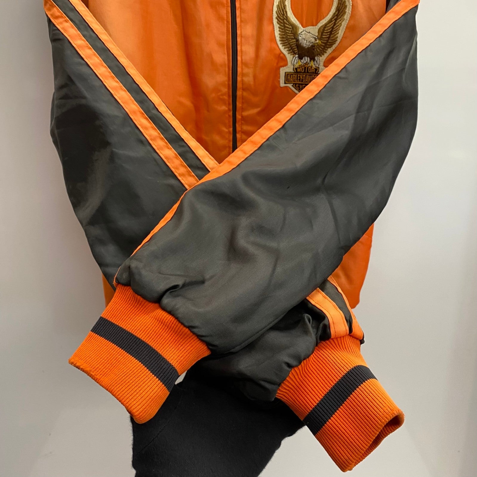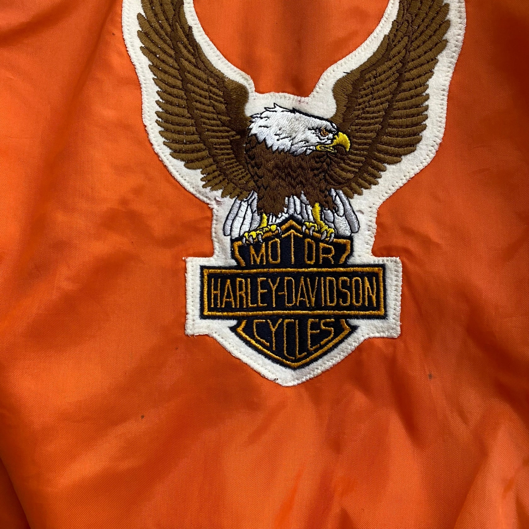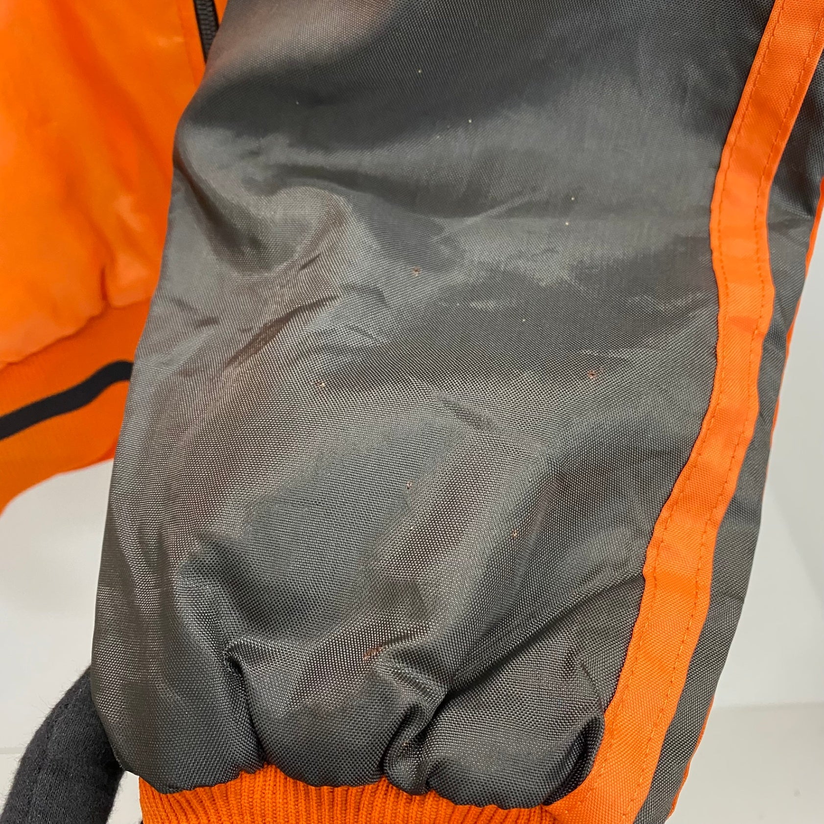 状態詳細 フロント面に少々日焼け感あり。左袖口周辺に小さな穴数か所あり。後ろ面ワッペン周辺に黒い汚れあり。 その他全体的に使用感、細かい傷や汚れがございます。詳細は画像をご確認ください。