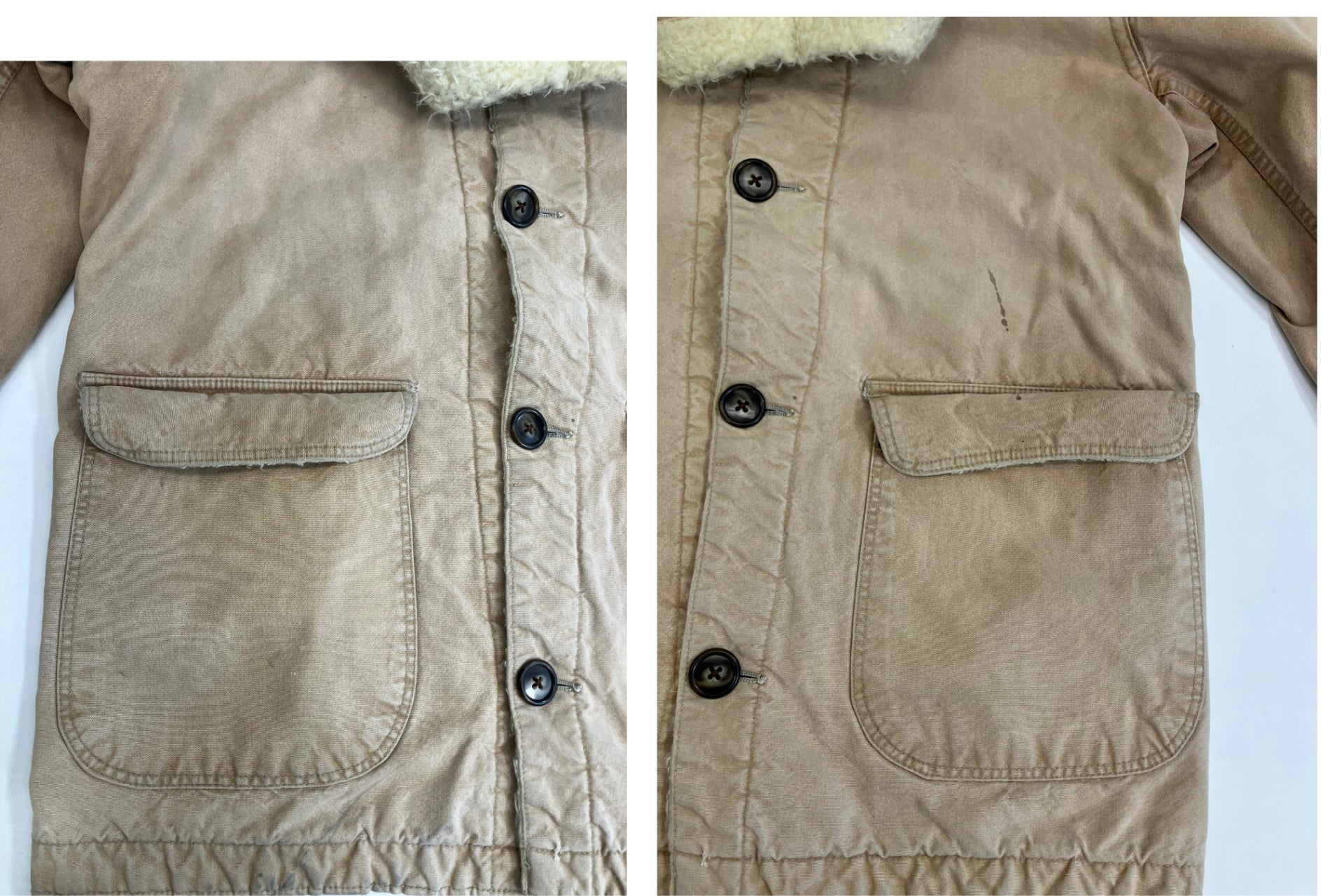 | 状態詳細 | 全体的に使用感、褪色、毛羽立ちなどVintage衣類特有の着用感あり。汚れ、リペア、ダメージ箇所あり。 |