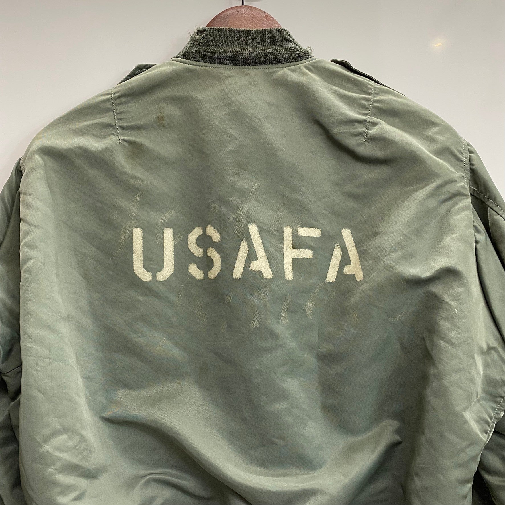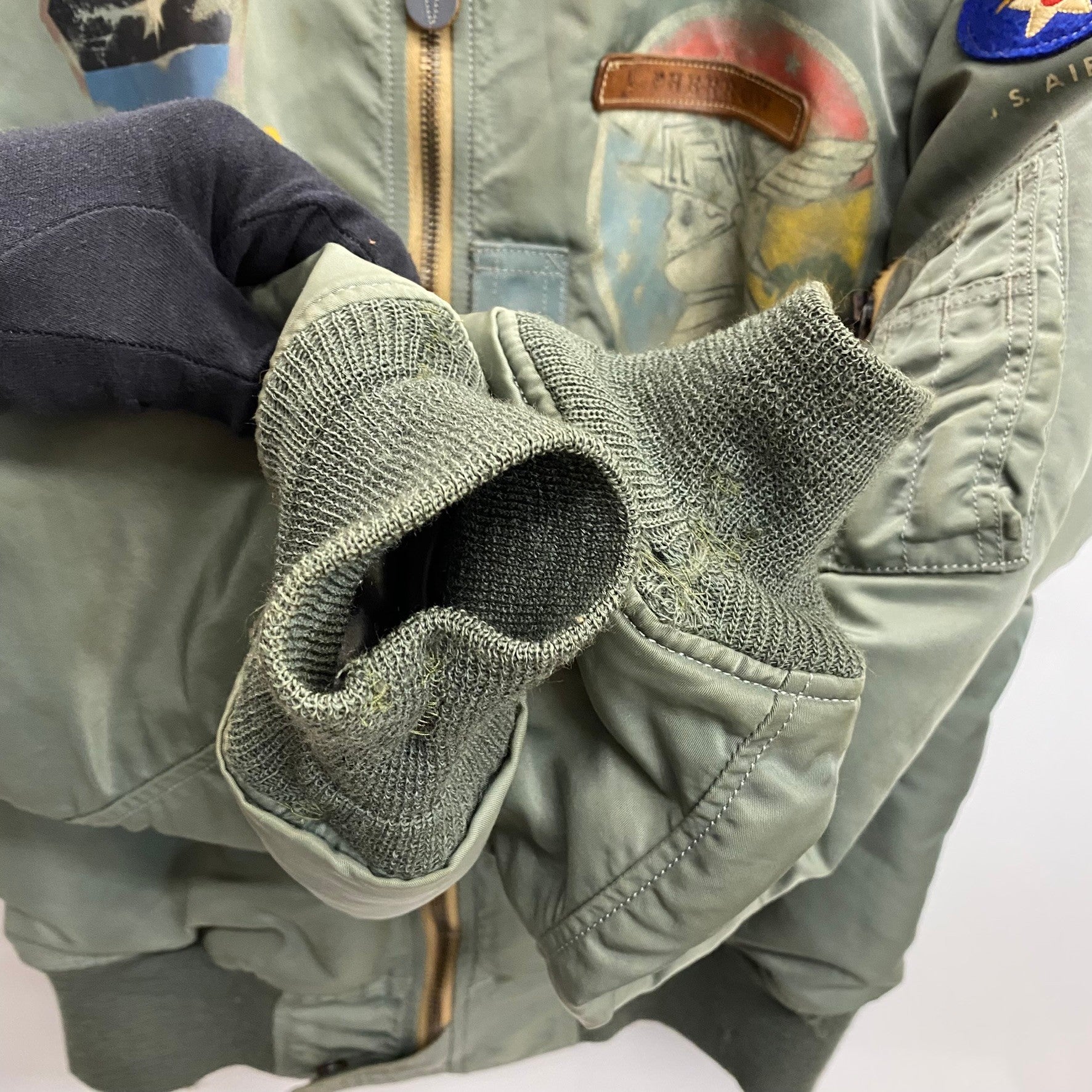 状態詳細 裾、襟リブにダメージあり。袖リブはリペアされています。 その他全体的に使用感、細かい傷や汚れがございます。詳細は画像をご確認ください。