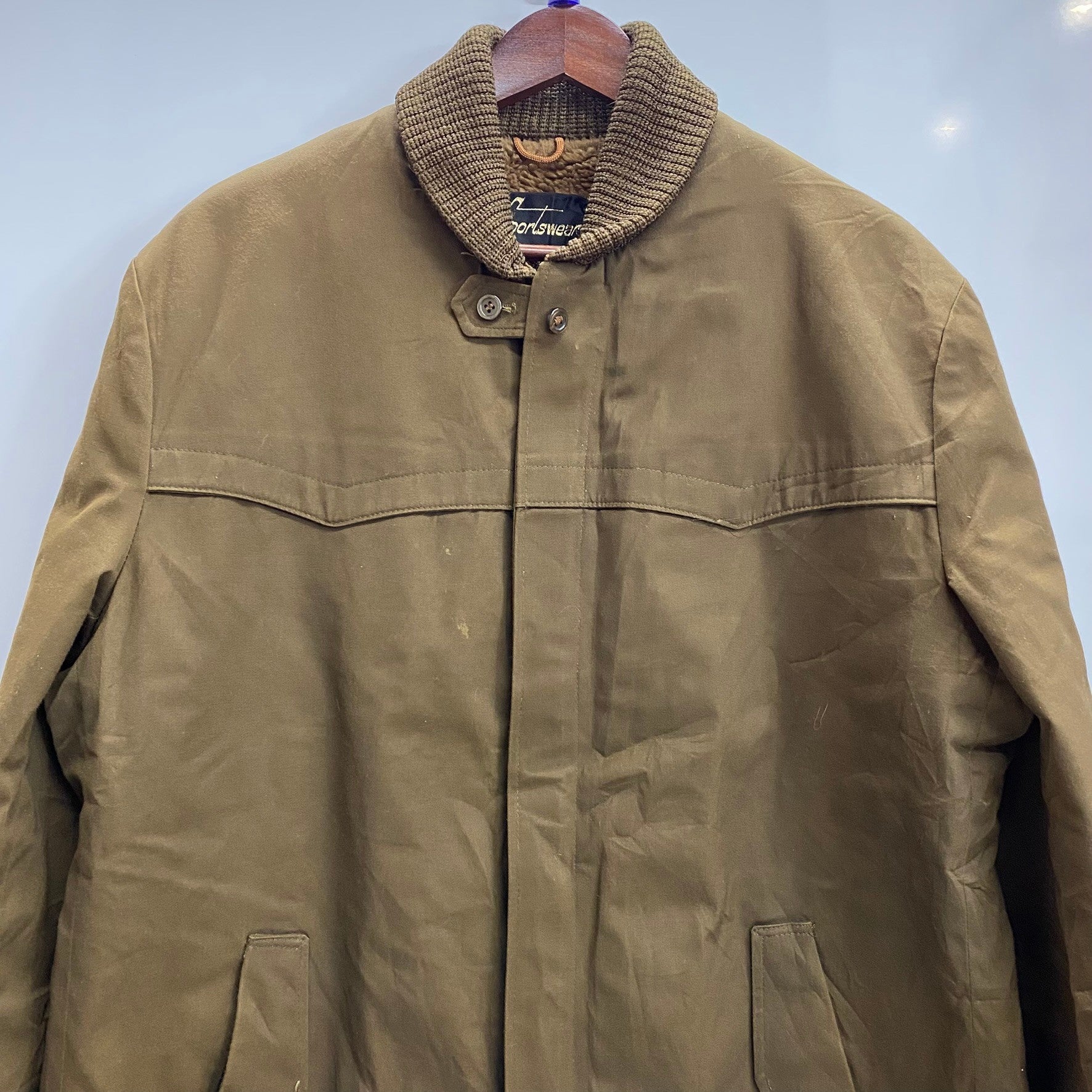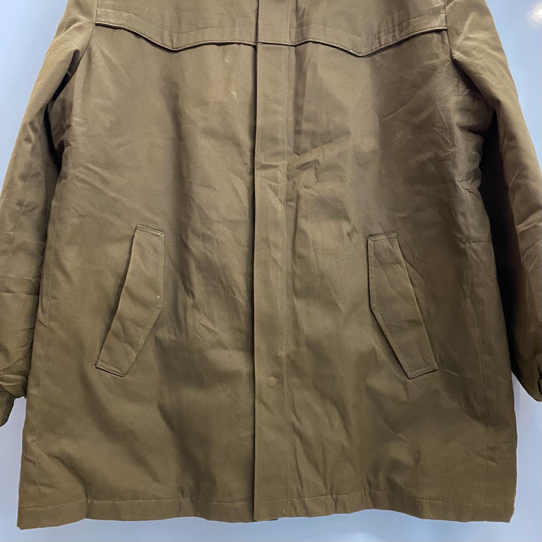 状態詳細 フロント面ヨーク下に少々汚れあり。襟元内側リブに薄い赤い汚れあり。 その他全体的に使用感がございます。詳細は画像をご確認下さい。