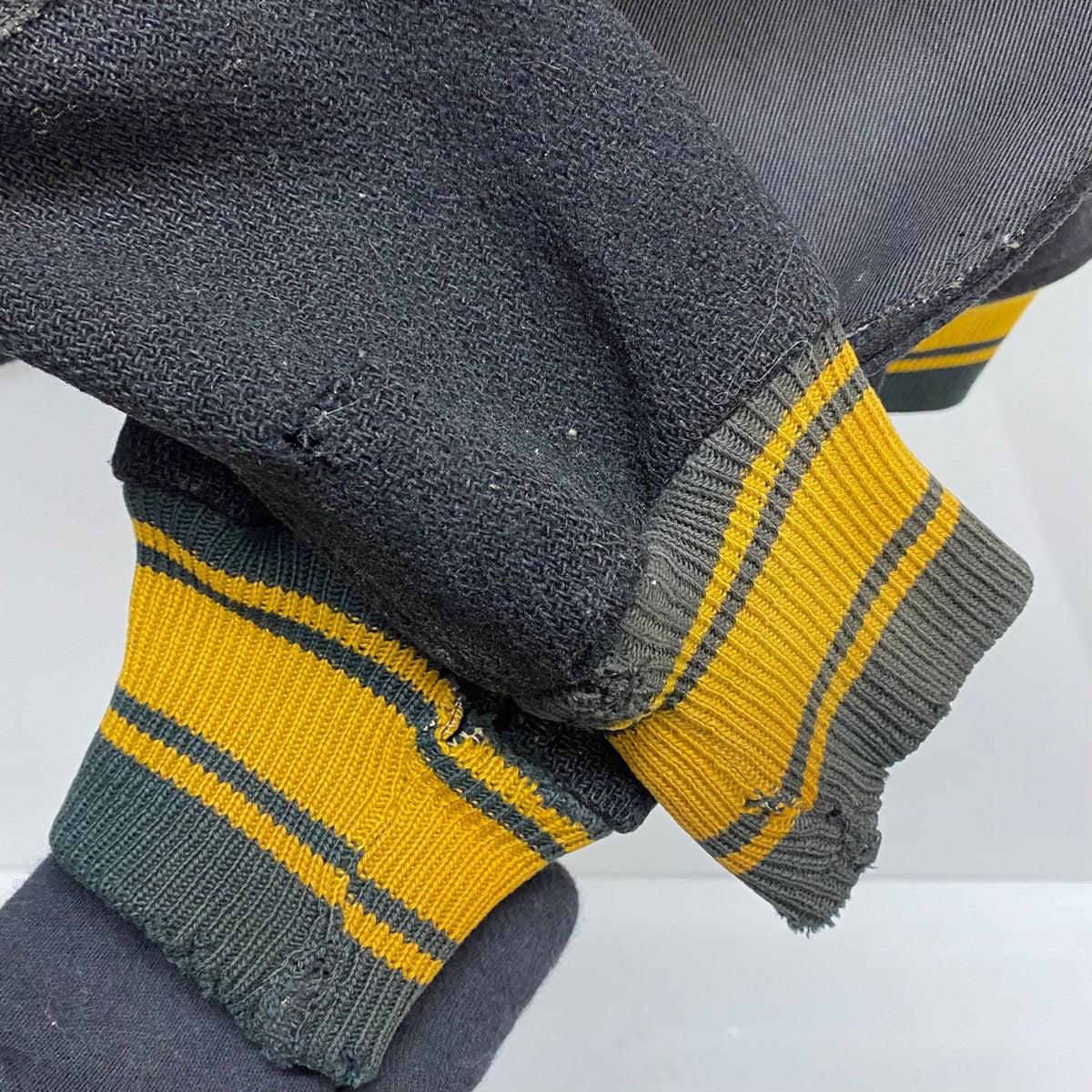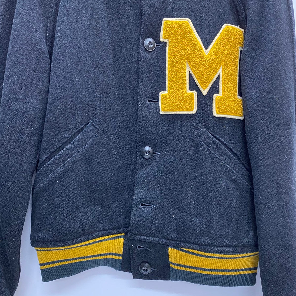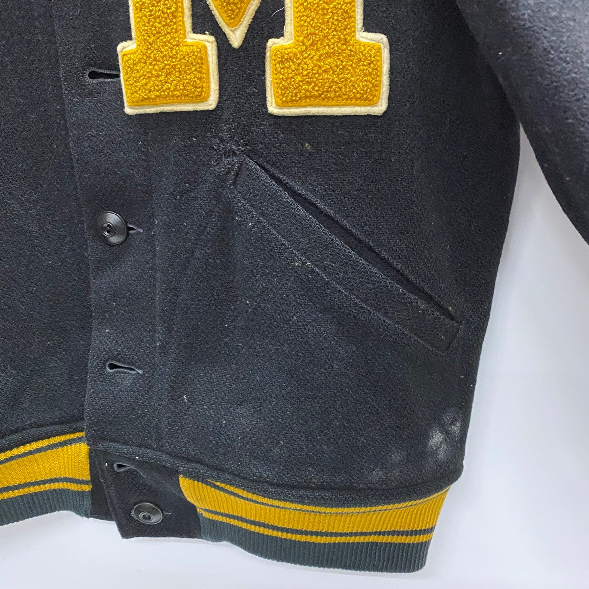 | 状態詳細 | ボタン三つ欠損。左ポケット周辺に汚れ有。袖口、襟元にダメージ有。 その他全体的に使用感、細かい傷や汚れが見られます。詳細は画像をご確認ください。 |