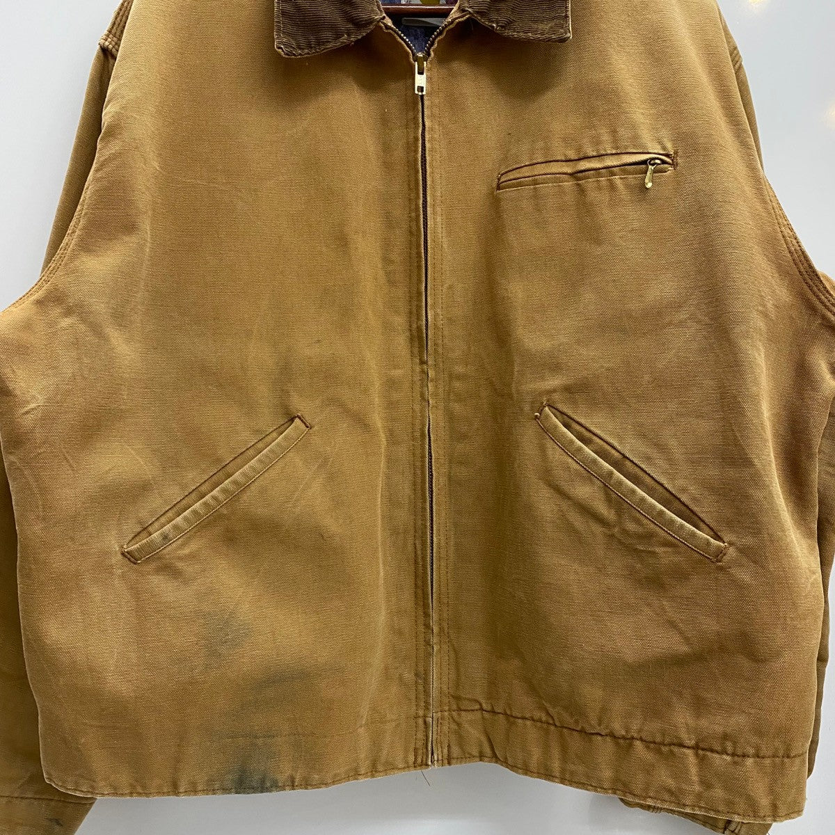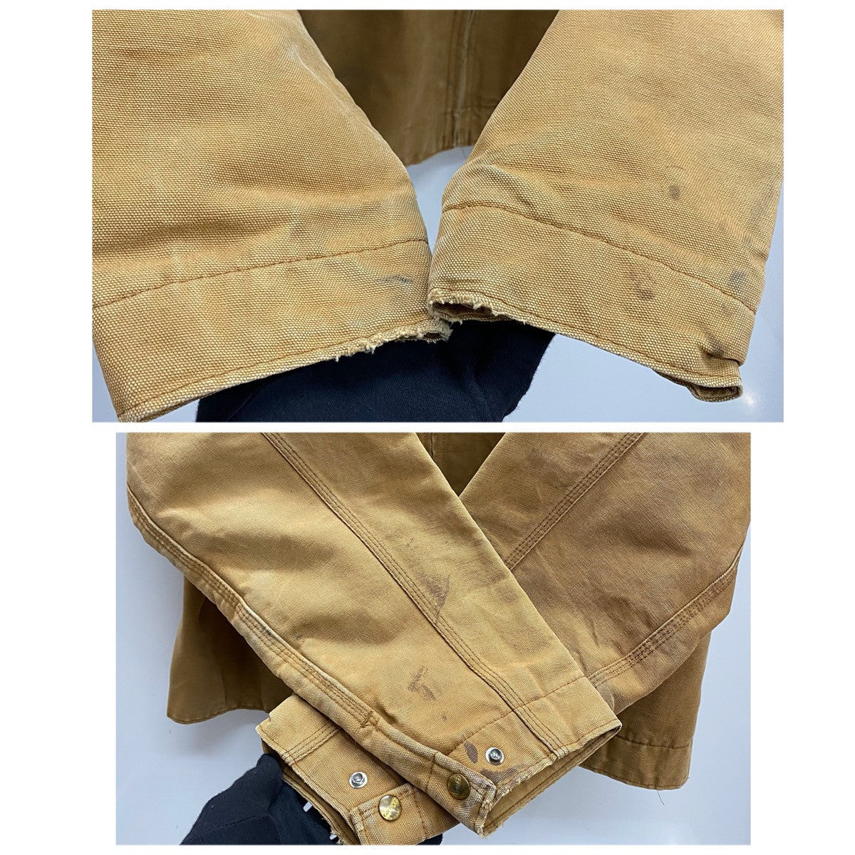 状態詳細 右ポケット周辺、袖口周辺に汚れ有。後ろ面右裾フラップ欠損。内側左アームホール下にリペアのような跡有(外側に影響なし)。 その他全体的に使用感、細かい傷や汚れが見られます。詳細は画像をご確認下さい。