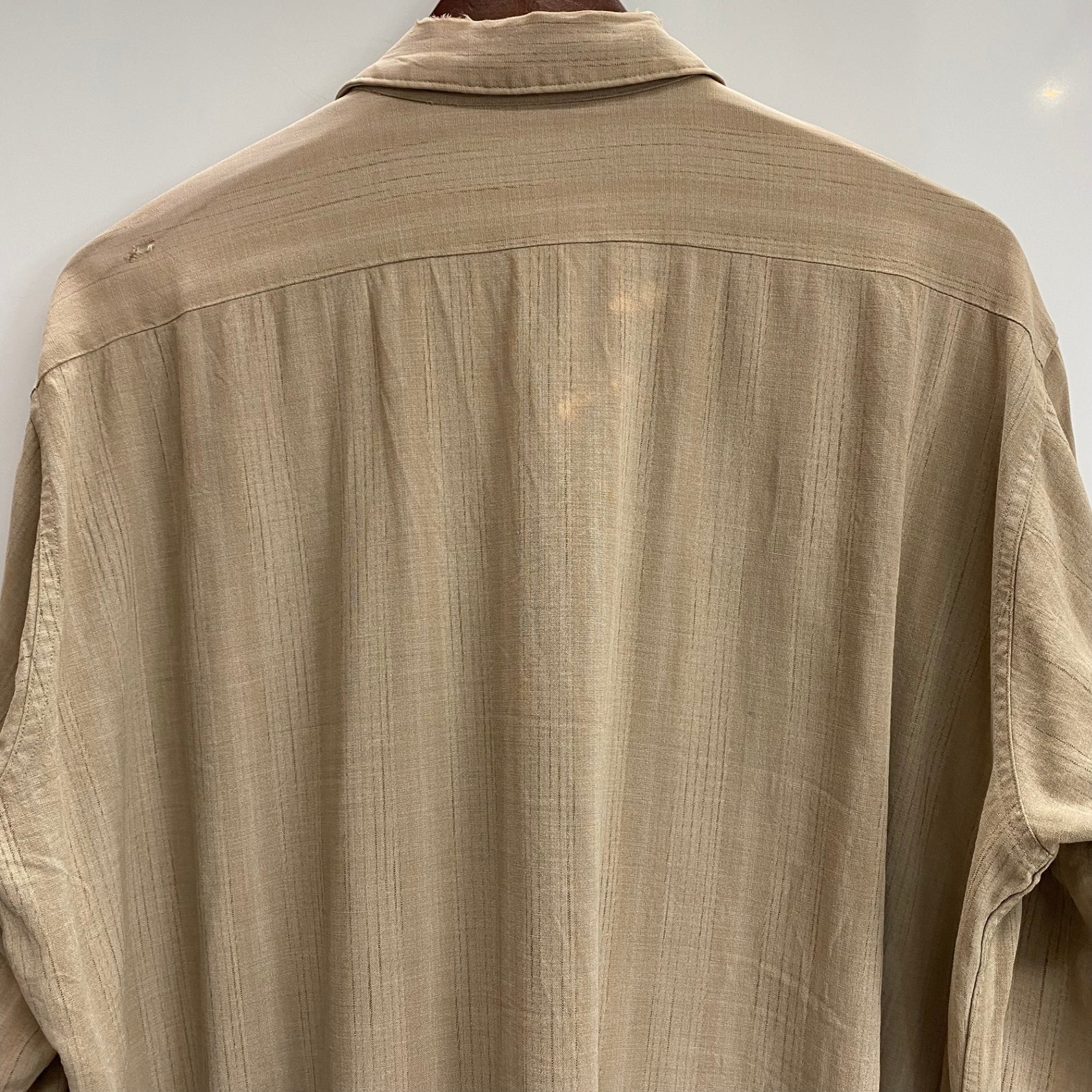 | 状態詳細 | 左胸ポケットに少々シミあり。左ひじに少々汚れあり。後ろ面上部、左脇に色落ちあり。襟元、肩にダメージあり。肩に日焼けあり。 その他全体的に使用感がございます。詳細は画像をご確認ください。 |