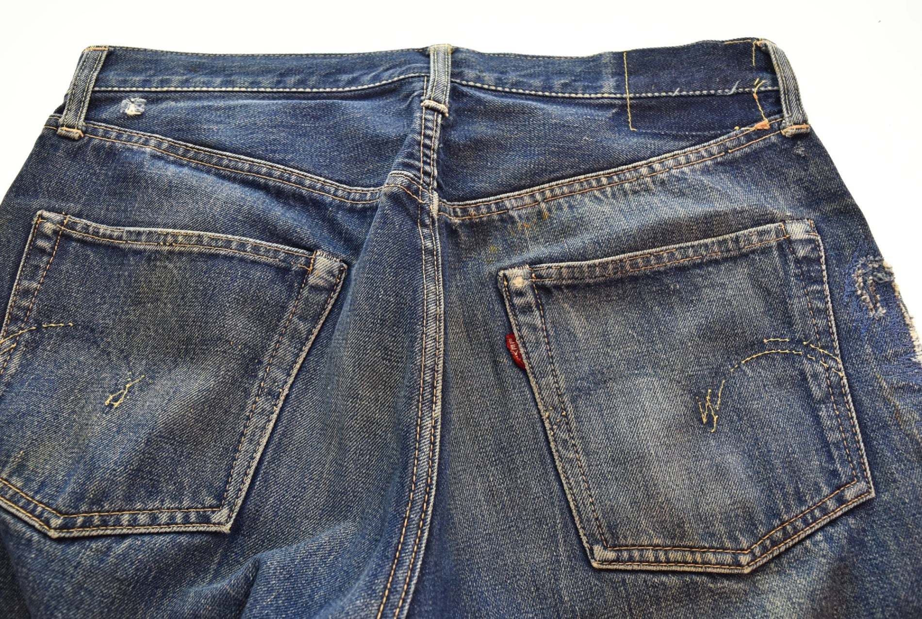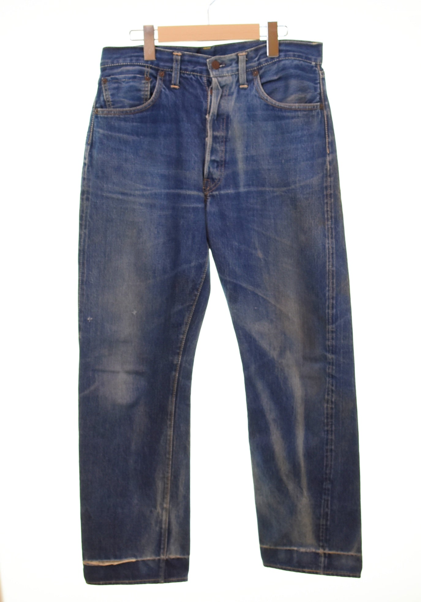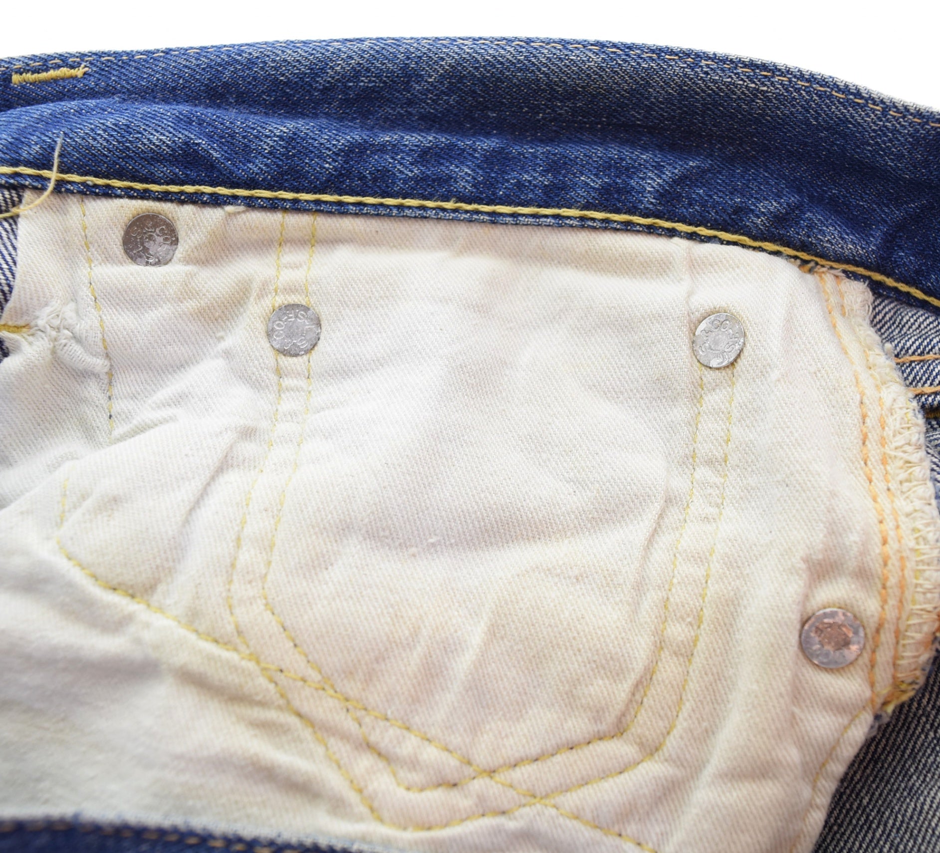 | 状態詳細 | 右足側サイド、裾、股リペアあり 紙パッチ欠損 裾等各所ダメージあり |