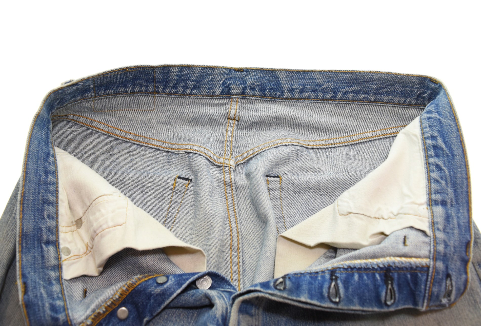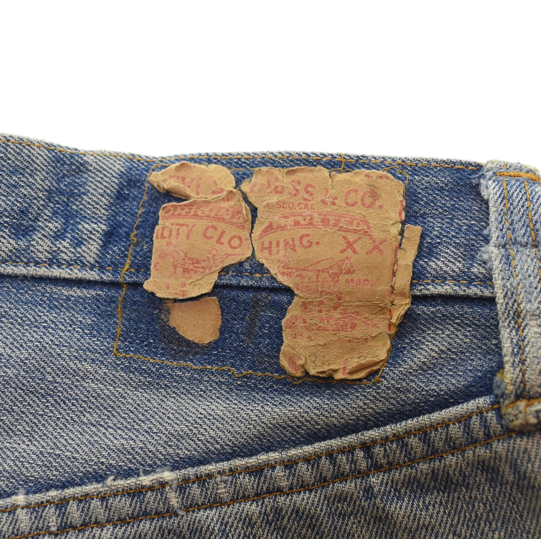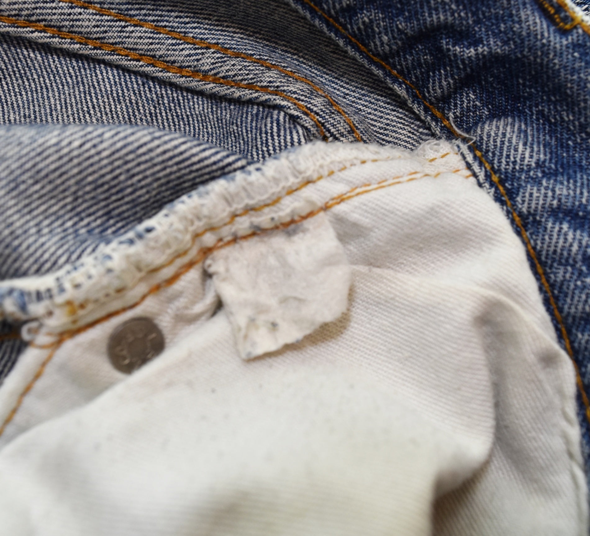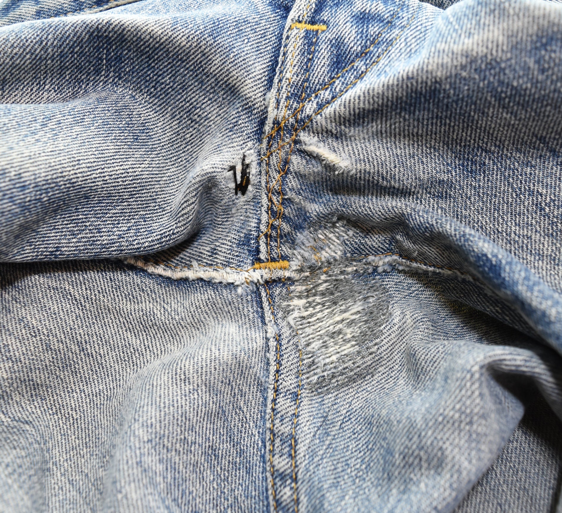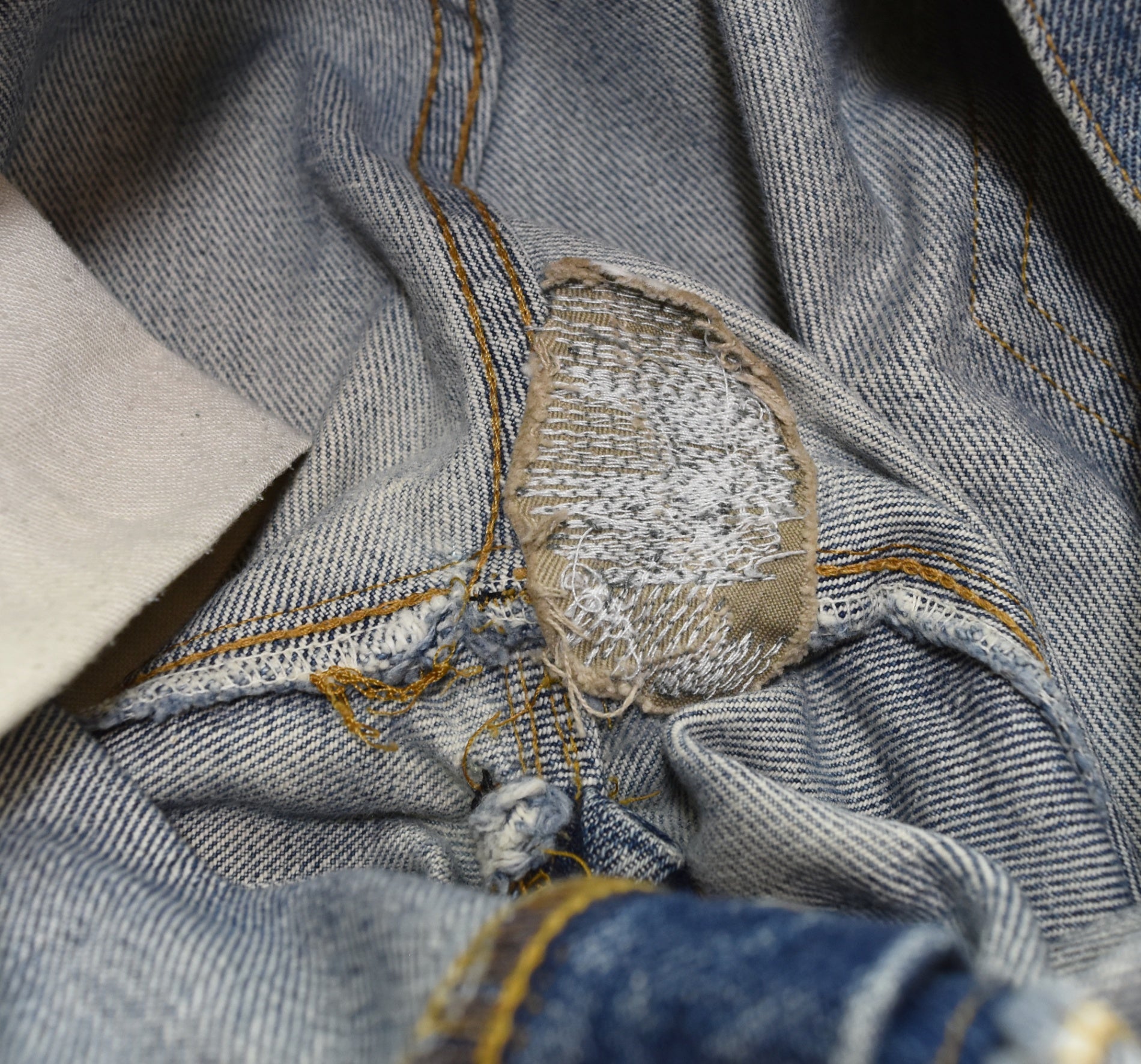 状態詳細 糊によるリペア、補強あり 股下リペアあり 裾リペアあり ベルトループリペアあり 紙パッチ割れあり