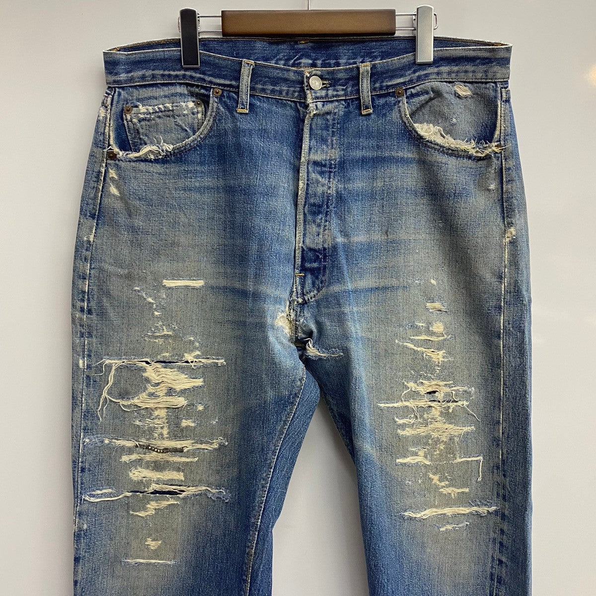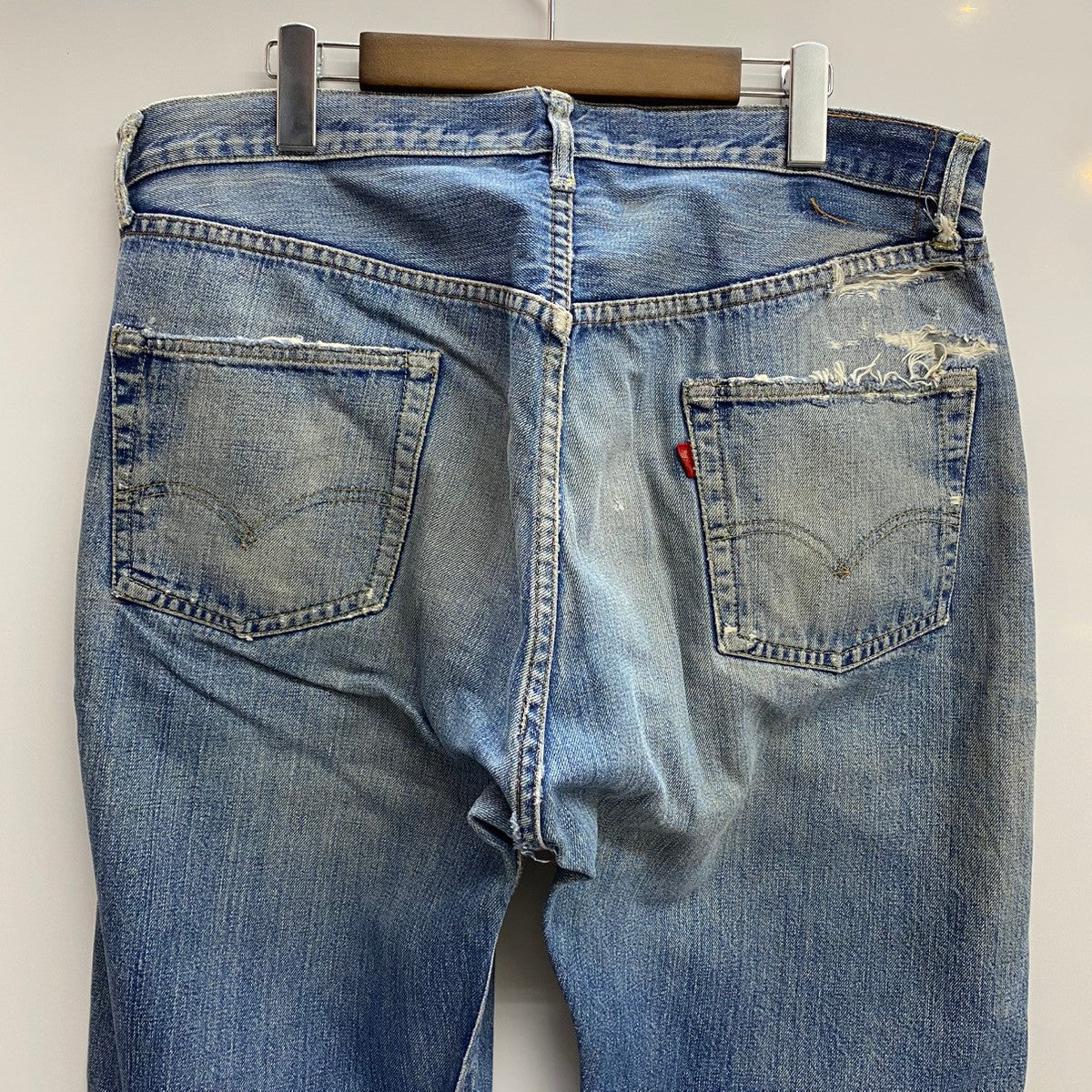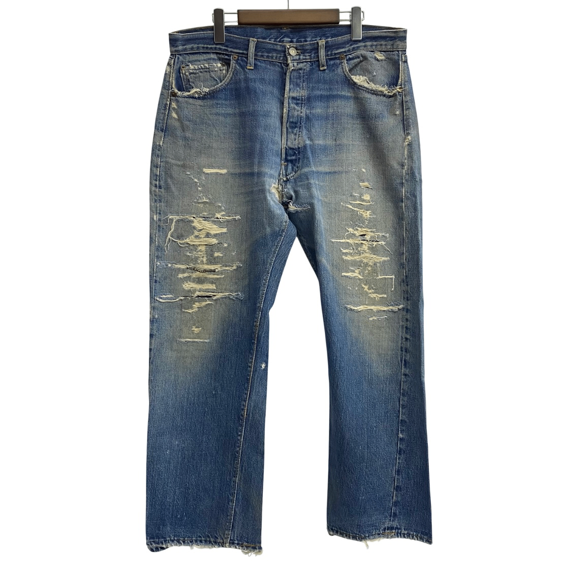 | 状態詳細 | フロント部分全体的にリペア跡、股下ダメージ、ポケット穴有、パッチ無し、後ろ右ポケット上部にダメージ、裾にダメージ有。 その他全体的に使用感、細かい傷や汚れが見られます。詳細は画像をご確認ください。 |