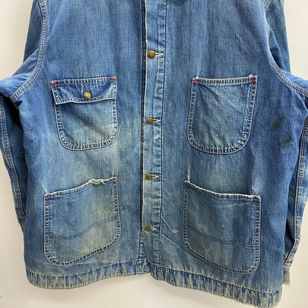 状態詳細 フロント面左脇下に汚れ、全体的に細かい傷や汚れが見られます。袖口周辺にダメージ、汚れ、左袖口付近に穴有。 その他全体的に使用感、細かい傷や汚れが見られます。詳細は画像をご確認下さい。