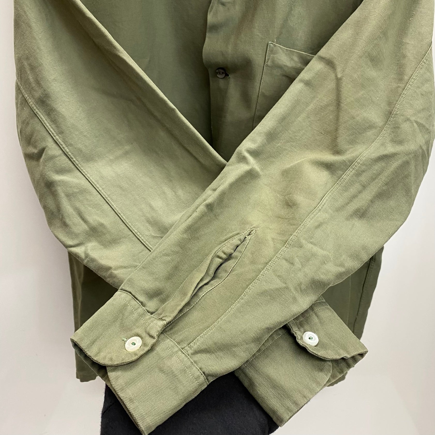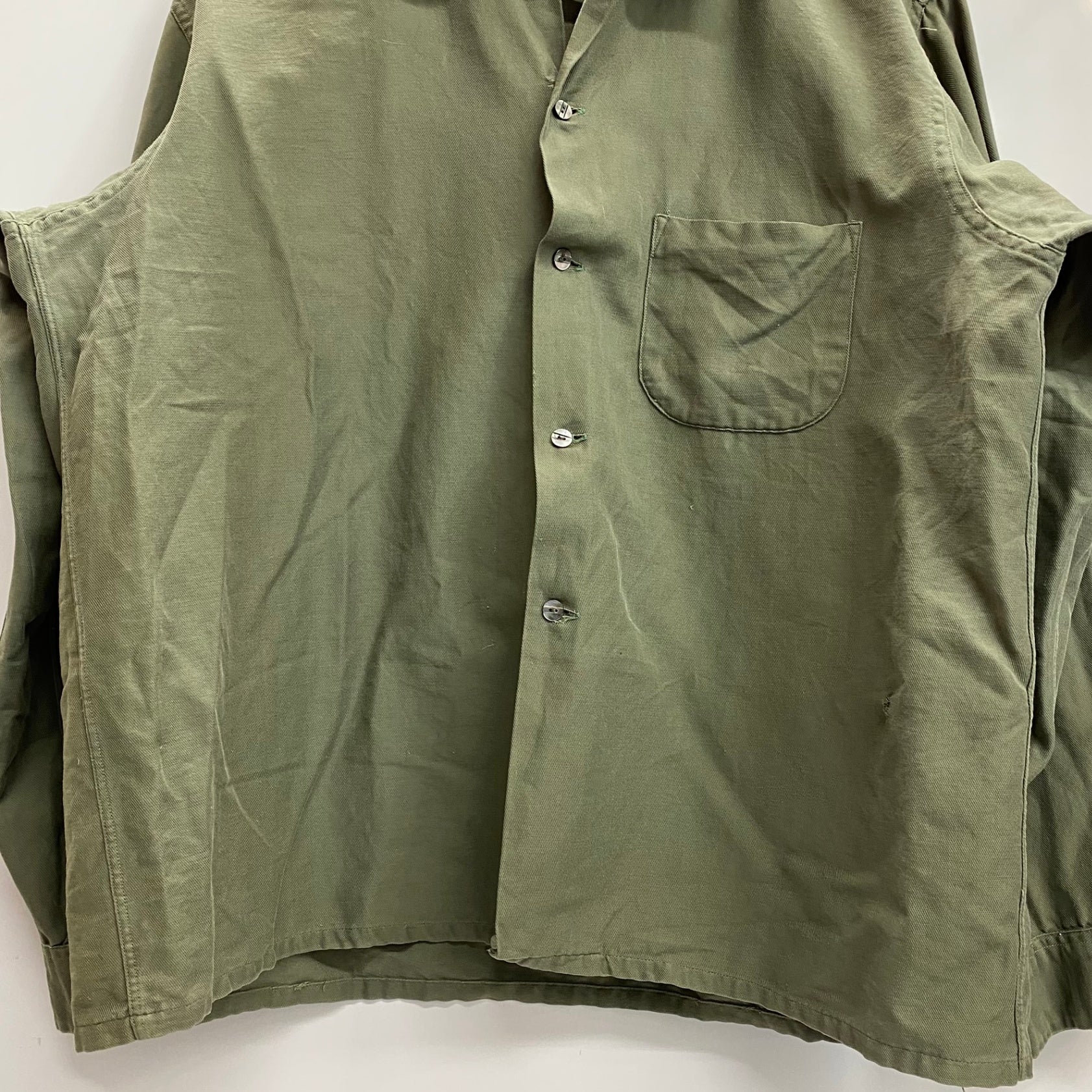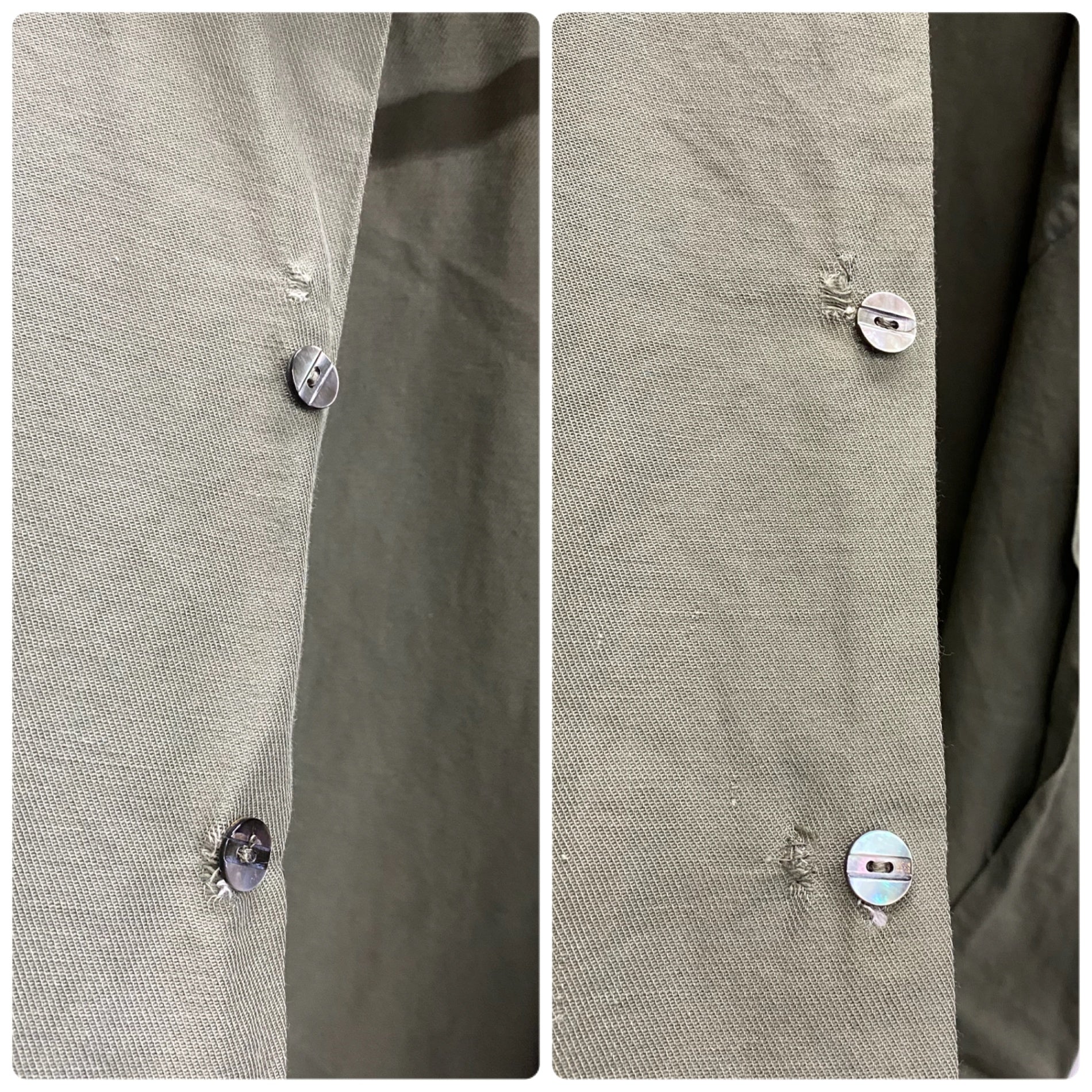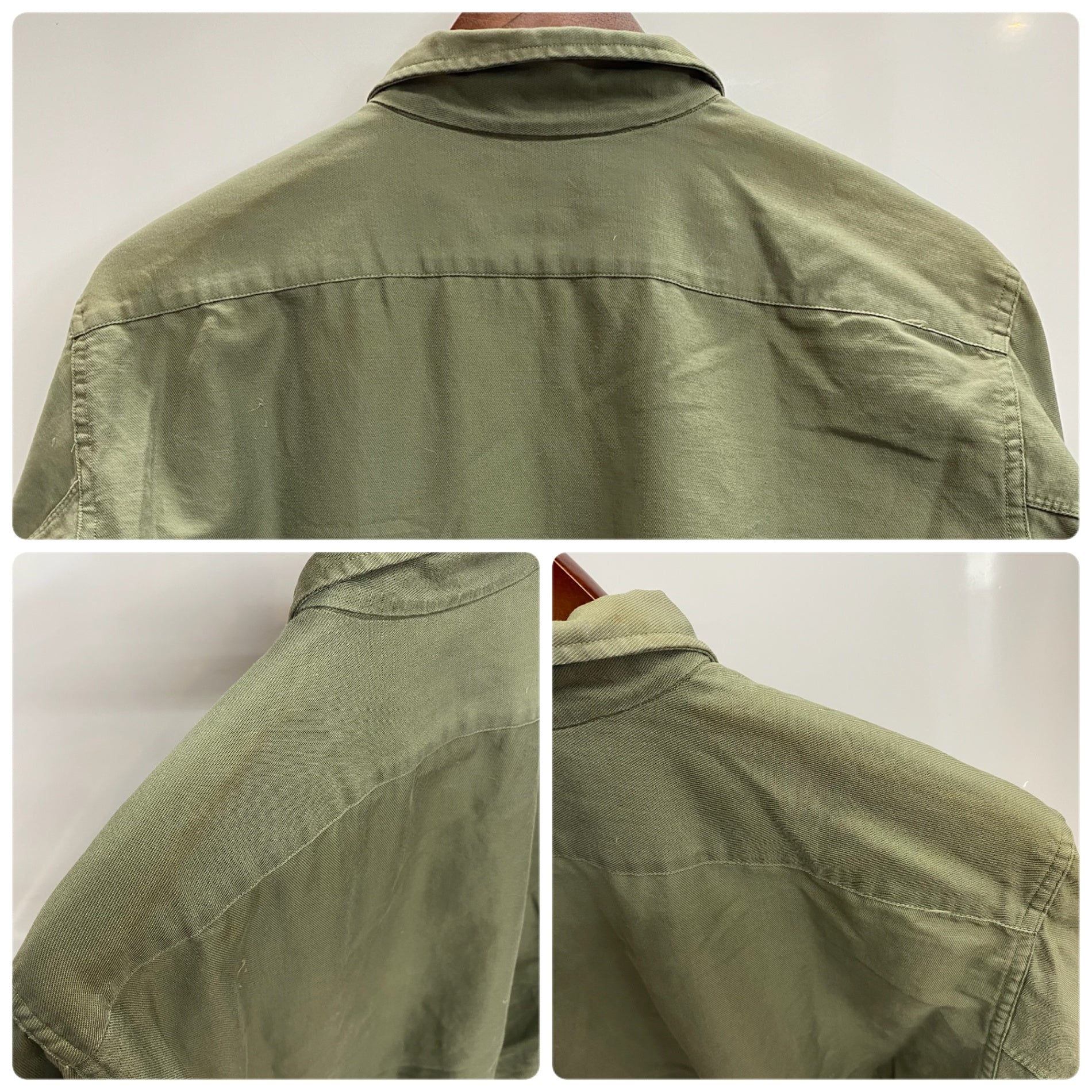 | 状態詳細 | ボタン周辺に少々ダメージあり。フロント面左裾上に縫い跡あり。後ろ面両肩に少々日焼けあり。襟元に汚れあり。 その他全体的に使用感、細かい傷が見られます。詳細は画像をご確認下さい。 |