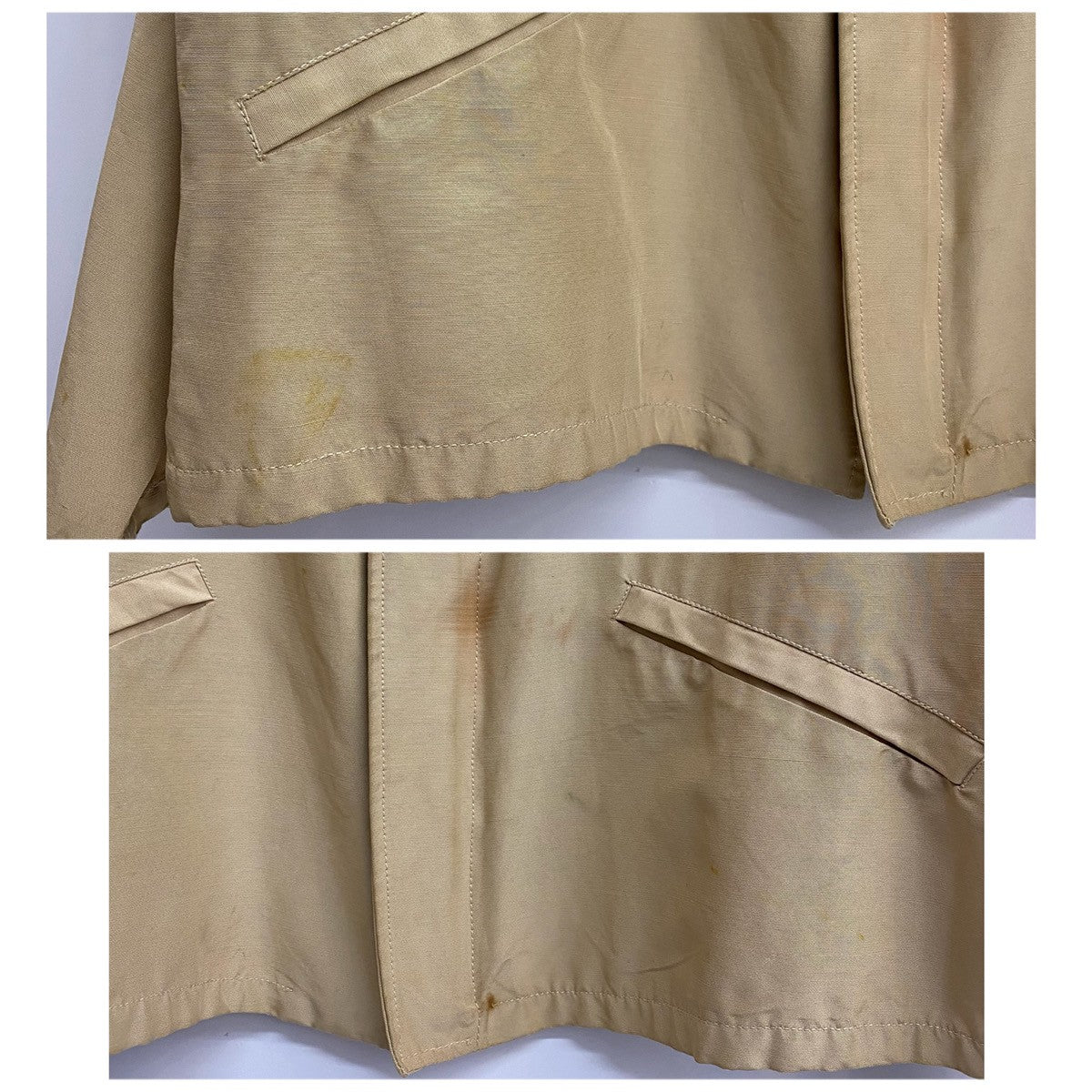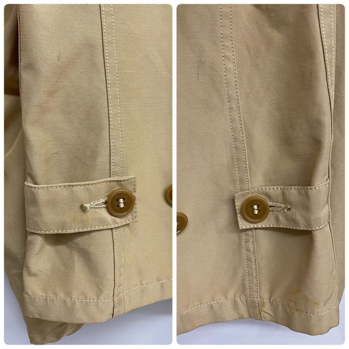 | 状態詳細 | タグ読み取り不可。フロントポケット周辺にインク汚れ、シミ汚れ、汚れ有。両脇に薄い脇シミ有。後ろ面両裾ボタン周辺にシミ汚れ有。アームと袖口にシミ汚れ有。その他全体的に使用感、細かい傷や汚れが見られます。詳細は画像をご確認下さい。 |