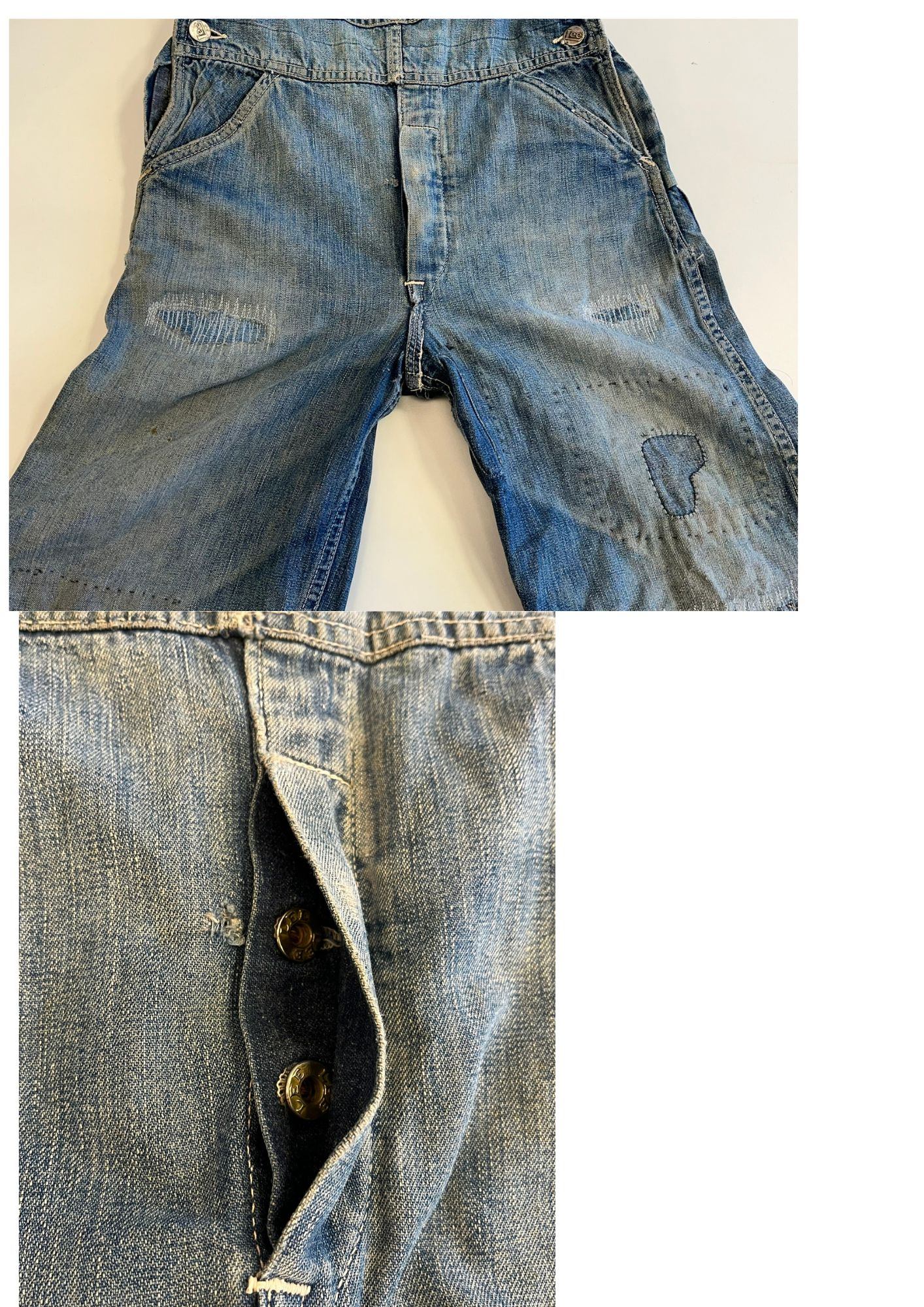| 状態詳細 | 全体的にヨレや皺、フェード、毛羽立ちなどVintage衣類特有の着用感あり。汚れや破れ、リペア箇所多数。 |