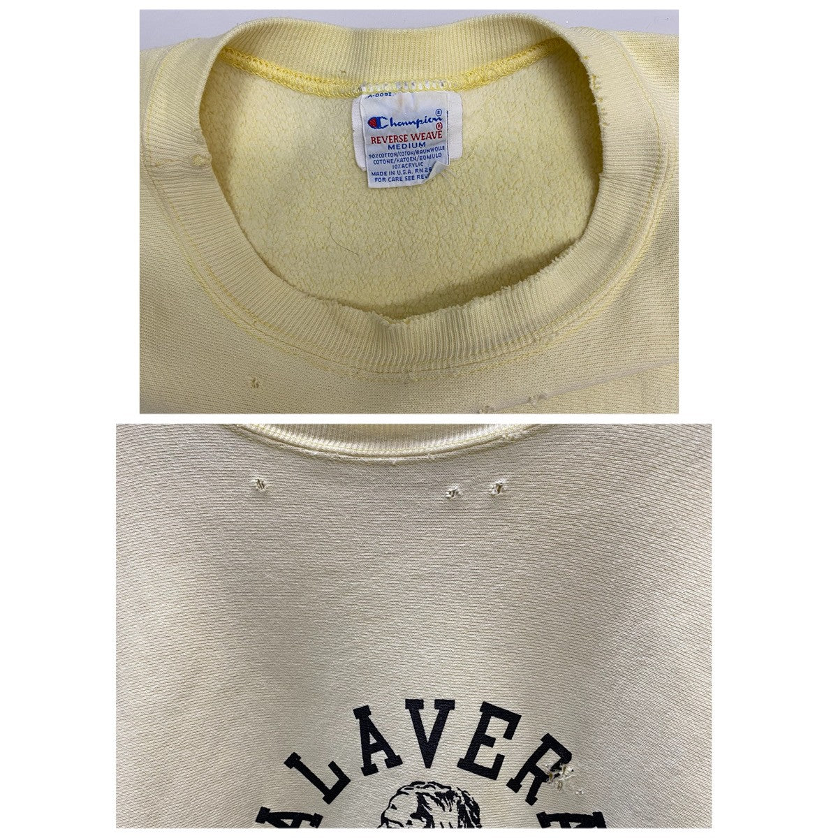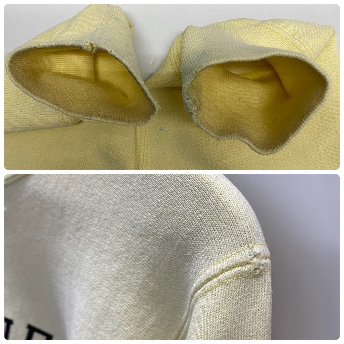 | 状態詳細 | 襟下、プリント部分にダメージあり。両脇下に薄い水色の汚れあり。右肩に少々傷あり。アームに水色の汚れ、袖口に汚れやダメージあり。 その他全体的に使用感、細かい傷や汚れが見られます。詳細は画像をご確認ください。 |