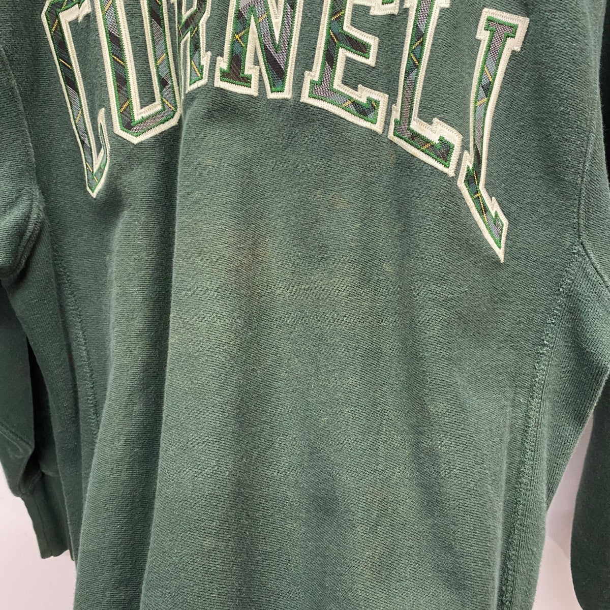 | 状態詳細 | フロント面中央付近に汚れあり。右肩にシミあり。両肩に色褪せあり。袖口に黄ばみあり。 その他全体的に使用感がございます。詳細は画像をご確認ください。 |