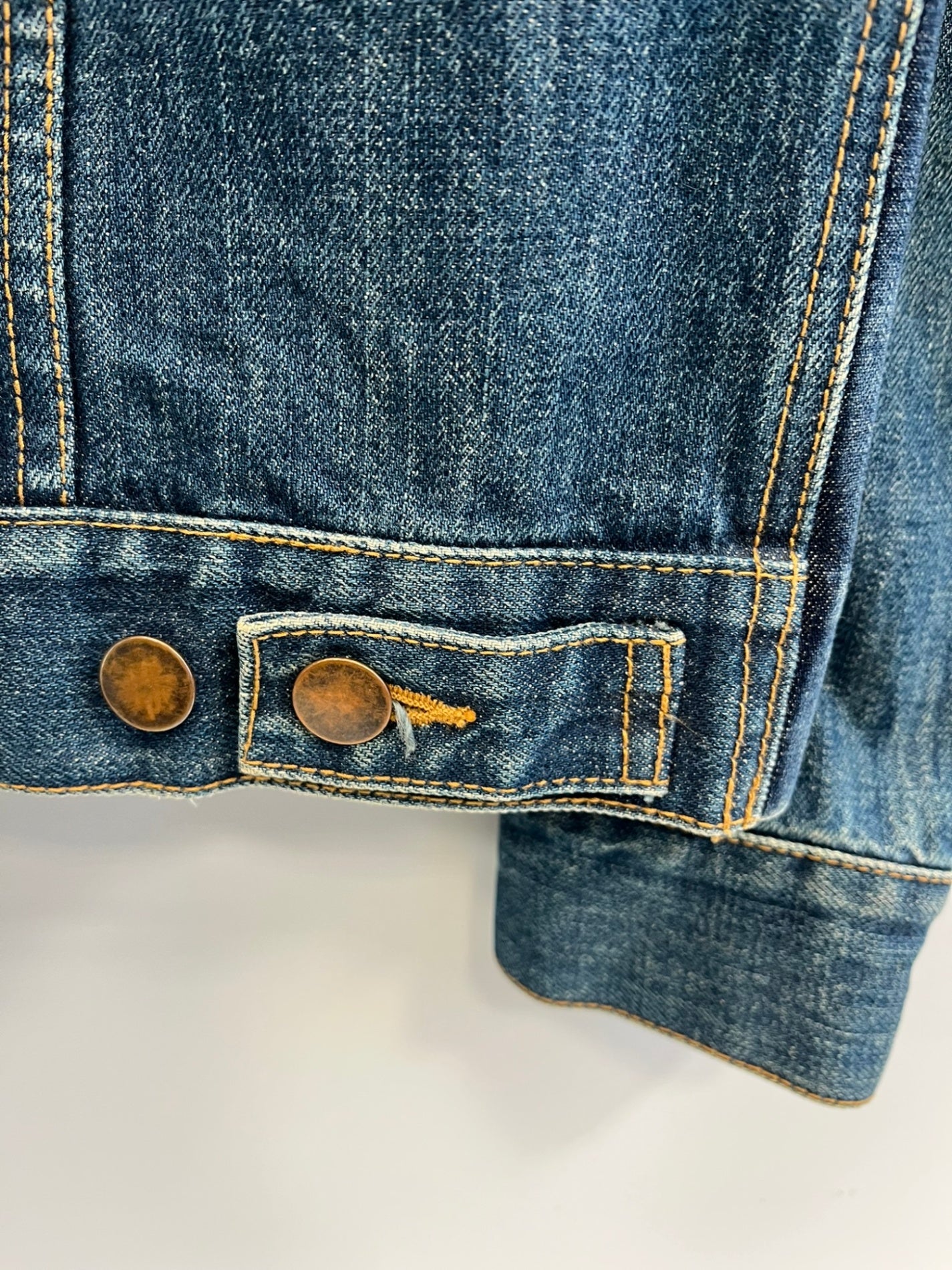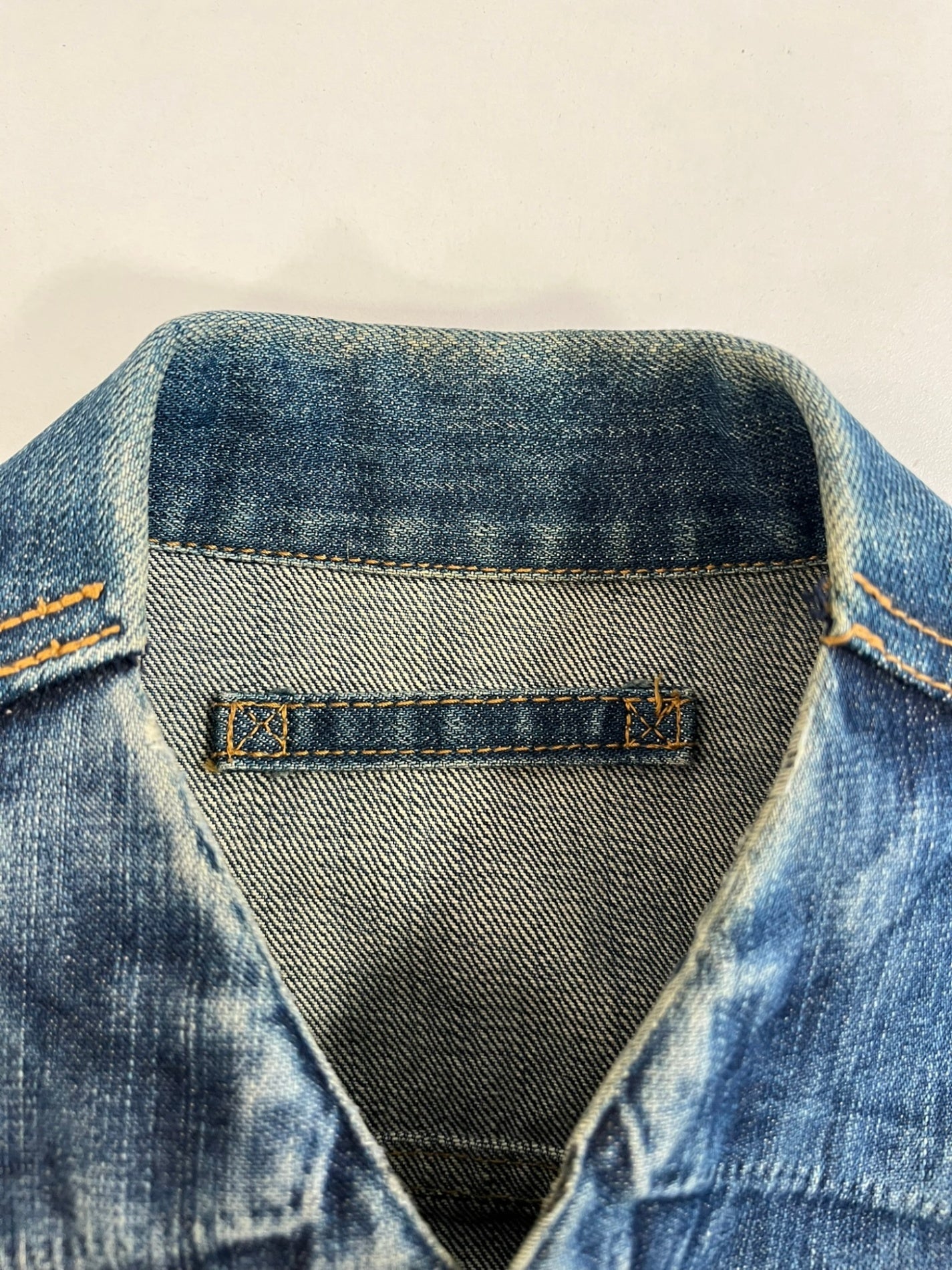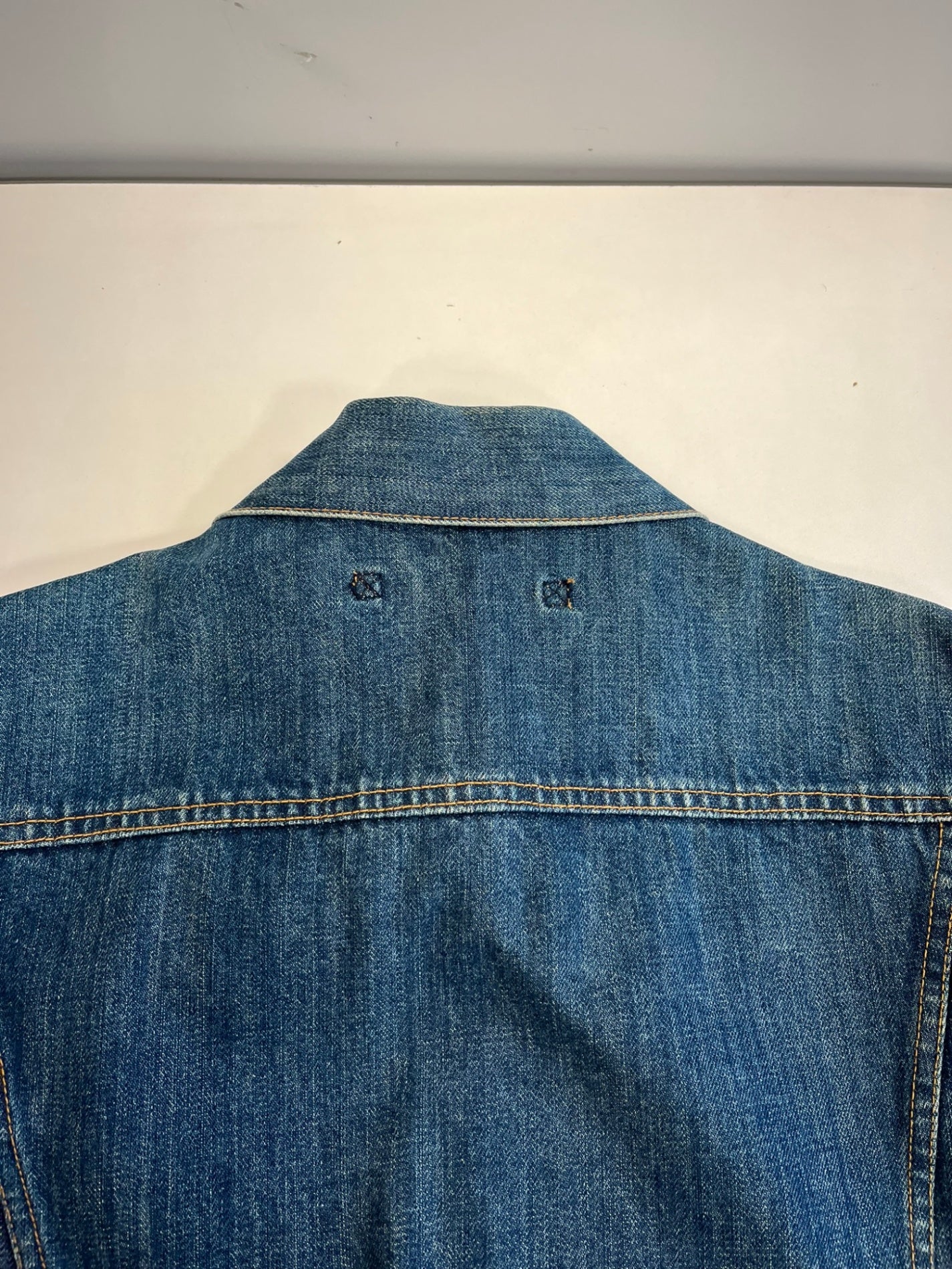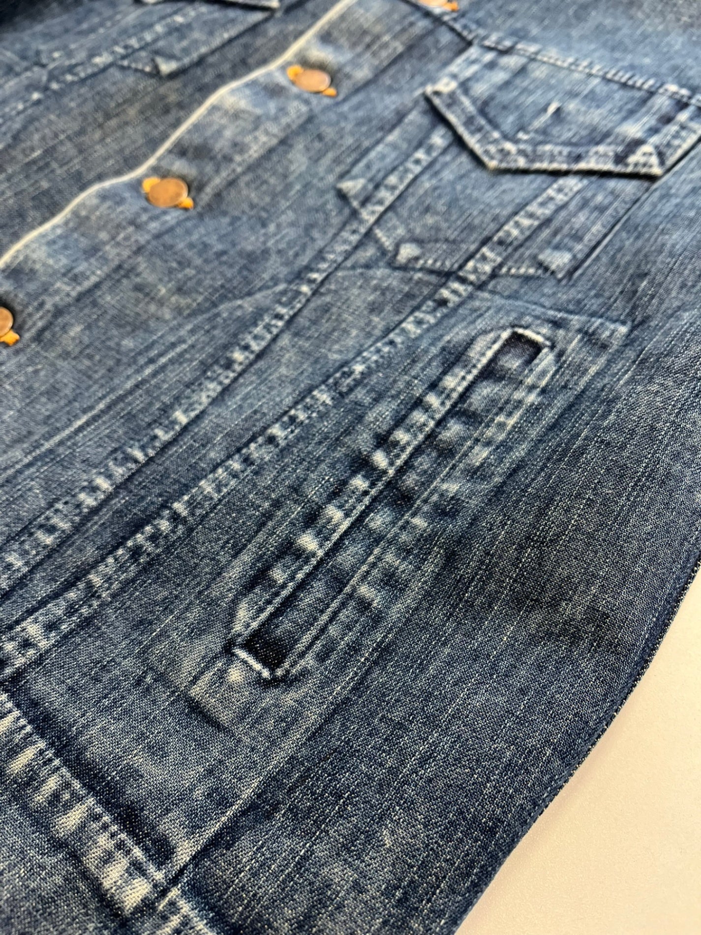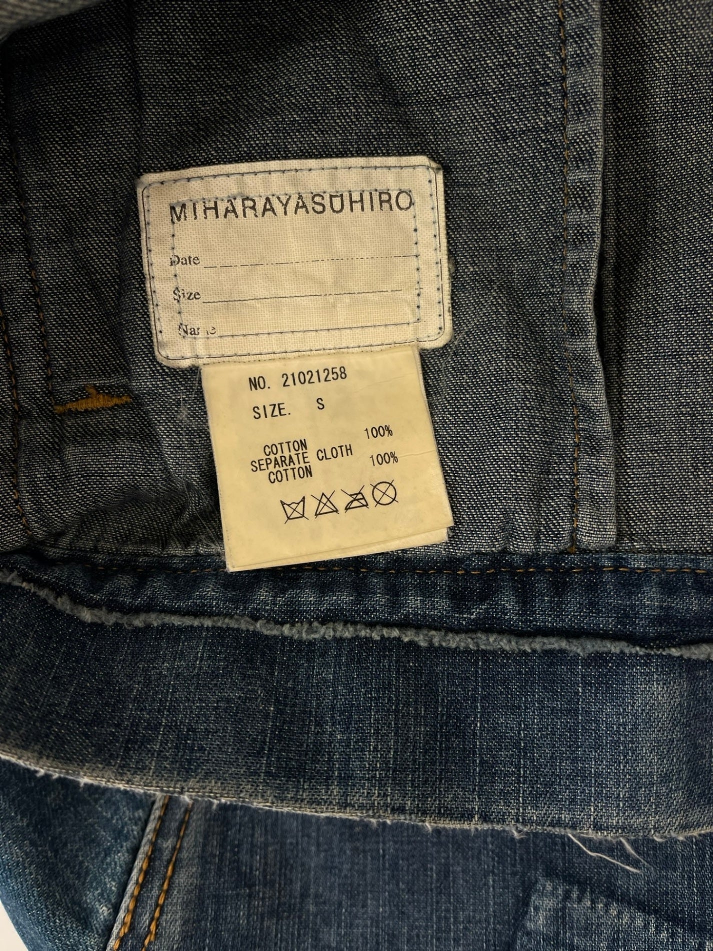 状態詳細 デニム特有の着用感あり。※ジャケット前身頃部分に別生地が付けてあるデザインとなります。ポケットなどはご利用いただけませんのであらかじめご了承ください。