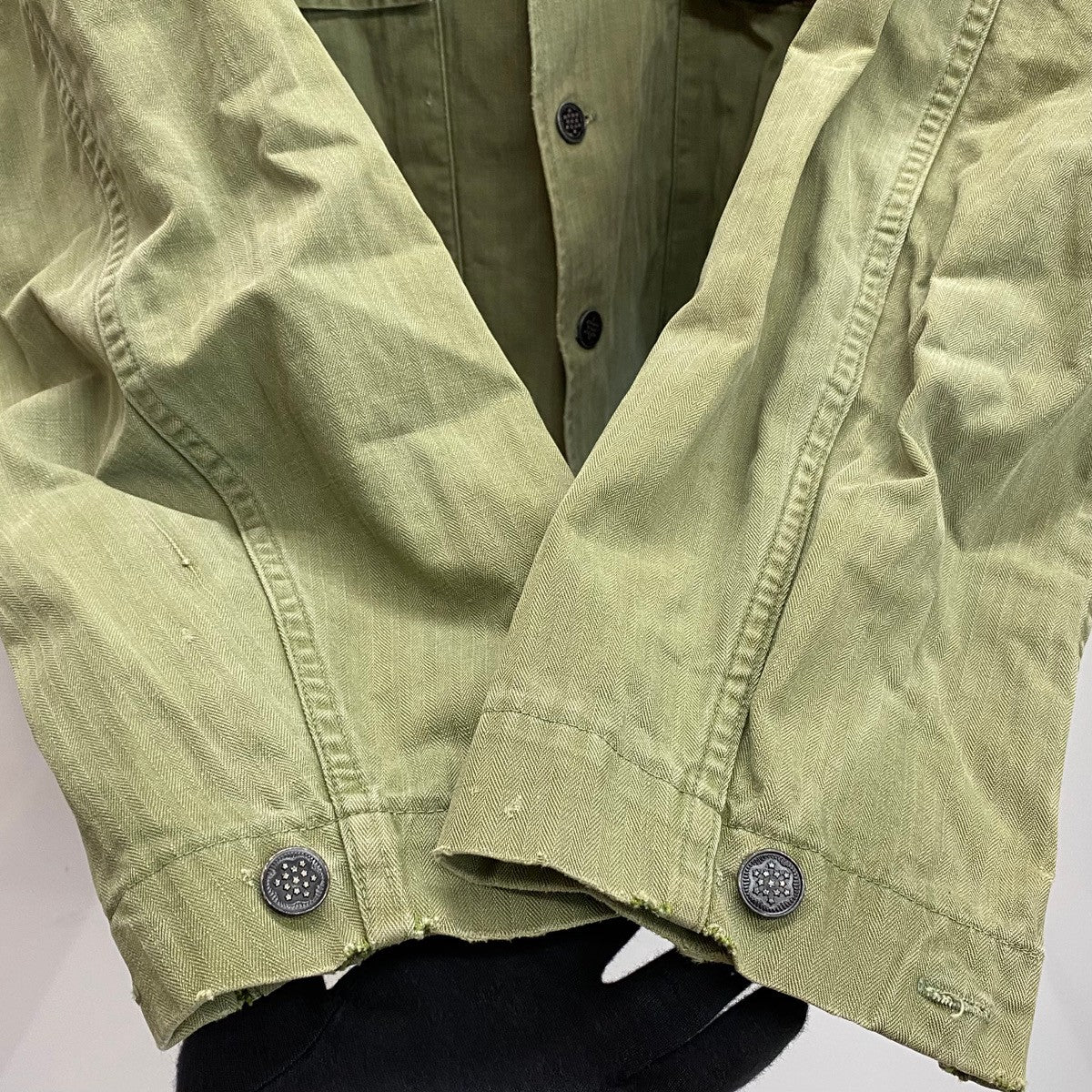 | 状態詳細 | 襟元にリペア、縫い跡有。フロント裾口、袖口にダメージ有。 その他全体的に使用感、細かい傷や汚れが見られます。詳細は画像をご確認下さい。 |