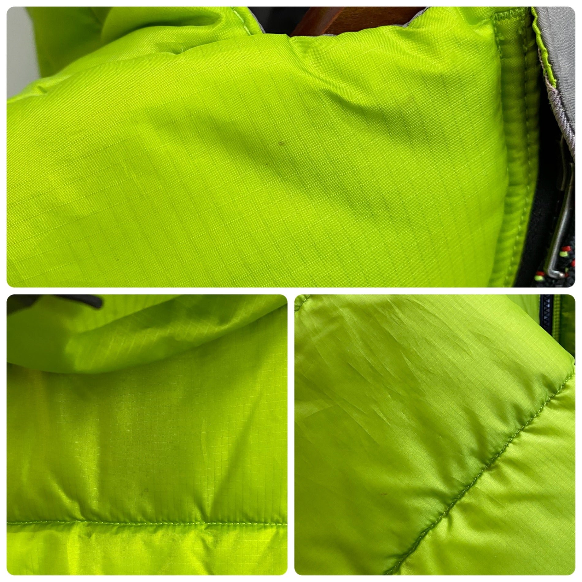 | 状態詳細 | 襟、右腕、フード下に小さな汚れあり。内側に少々汚れあり。 その他目立った傷や汚れはなく、比較的綺麗な状態です。詳細は画像をご確認ください。 |